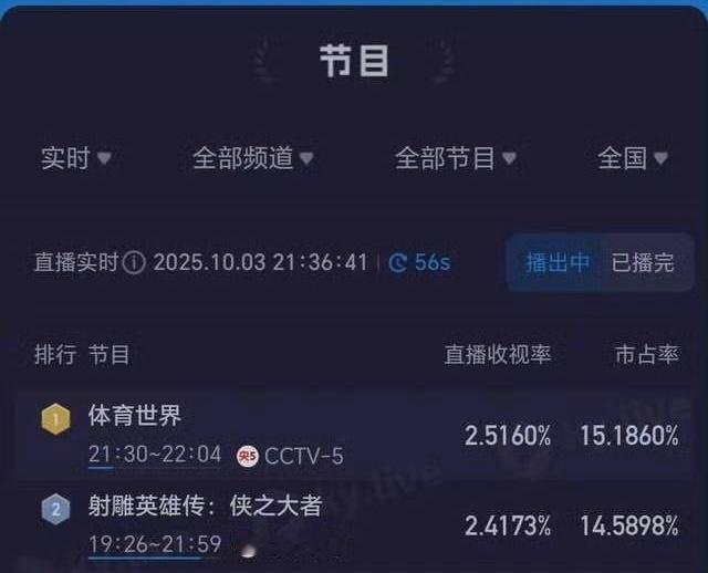肖战射雕英雄传实时收视率破2六公主25年唯一收视战报。