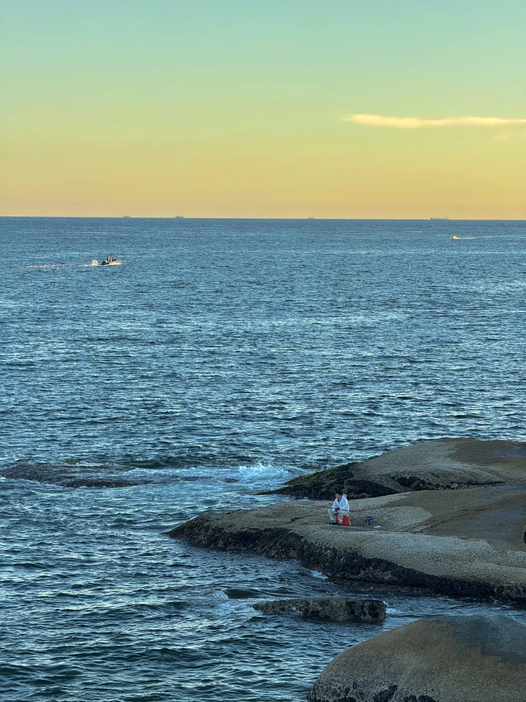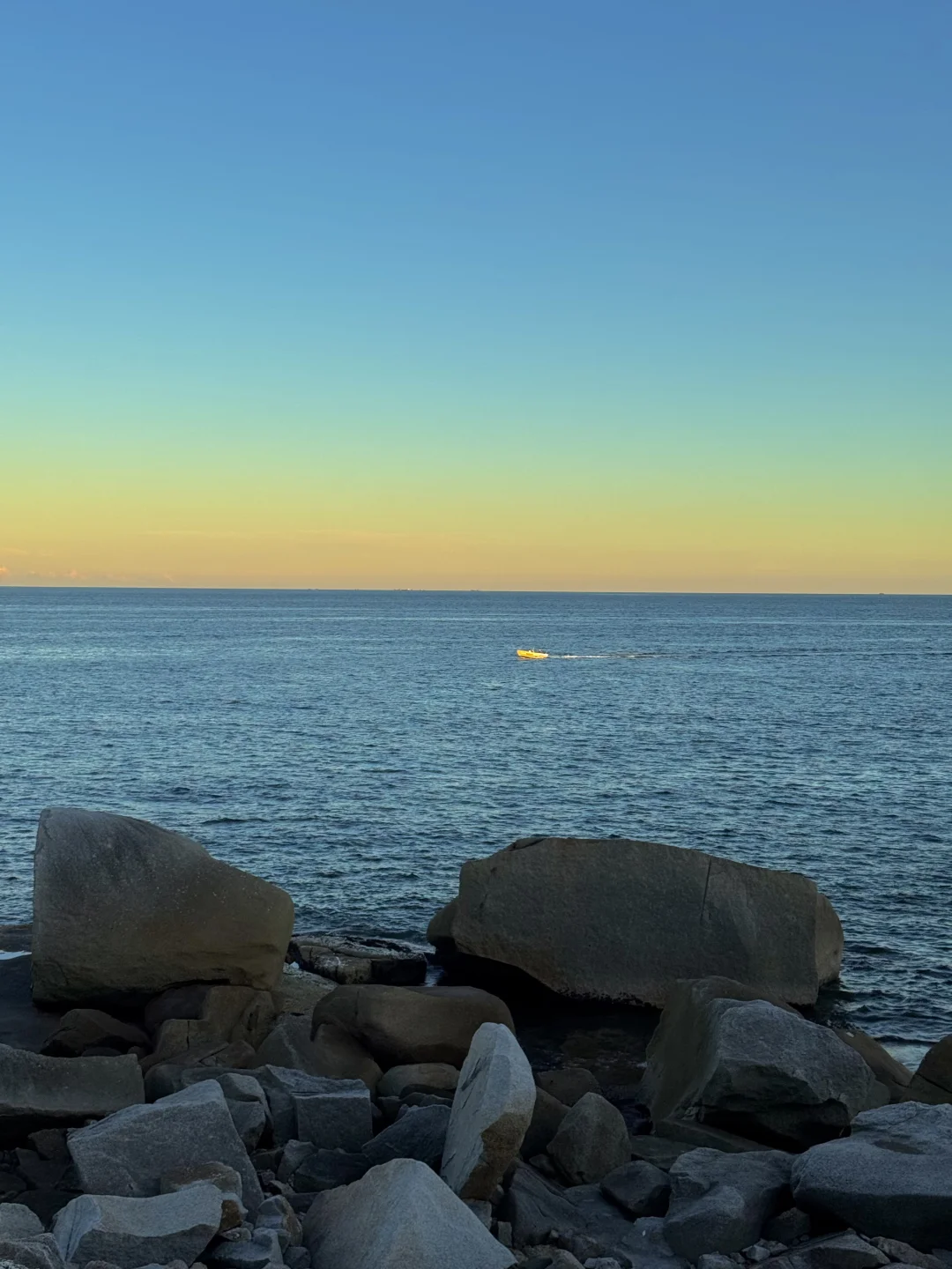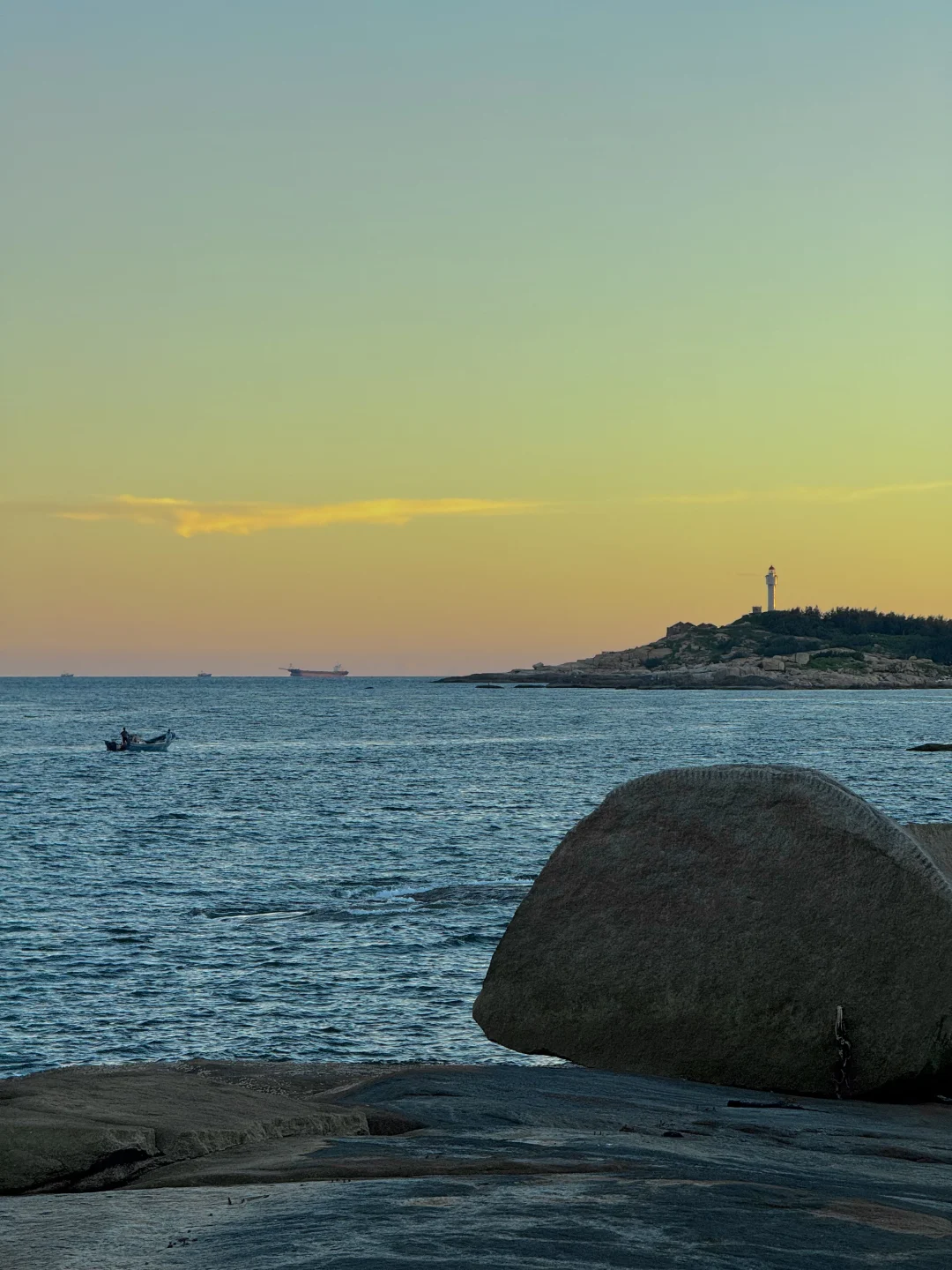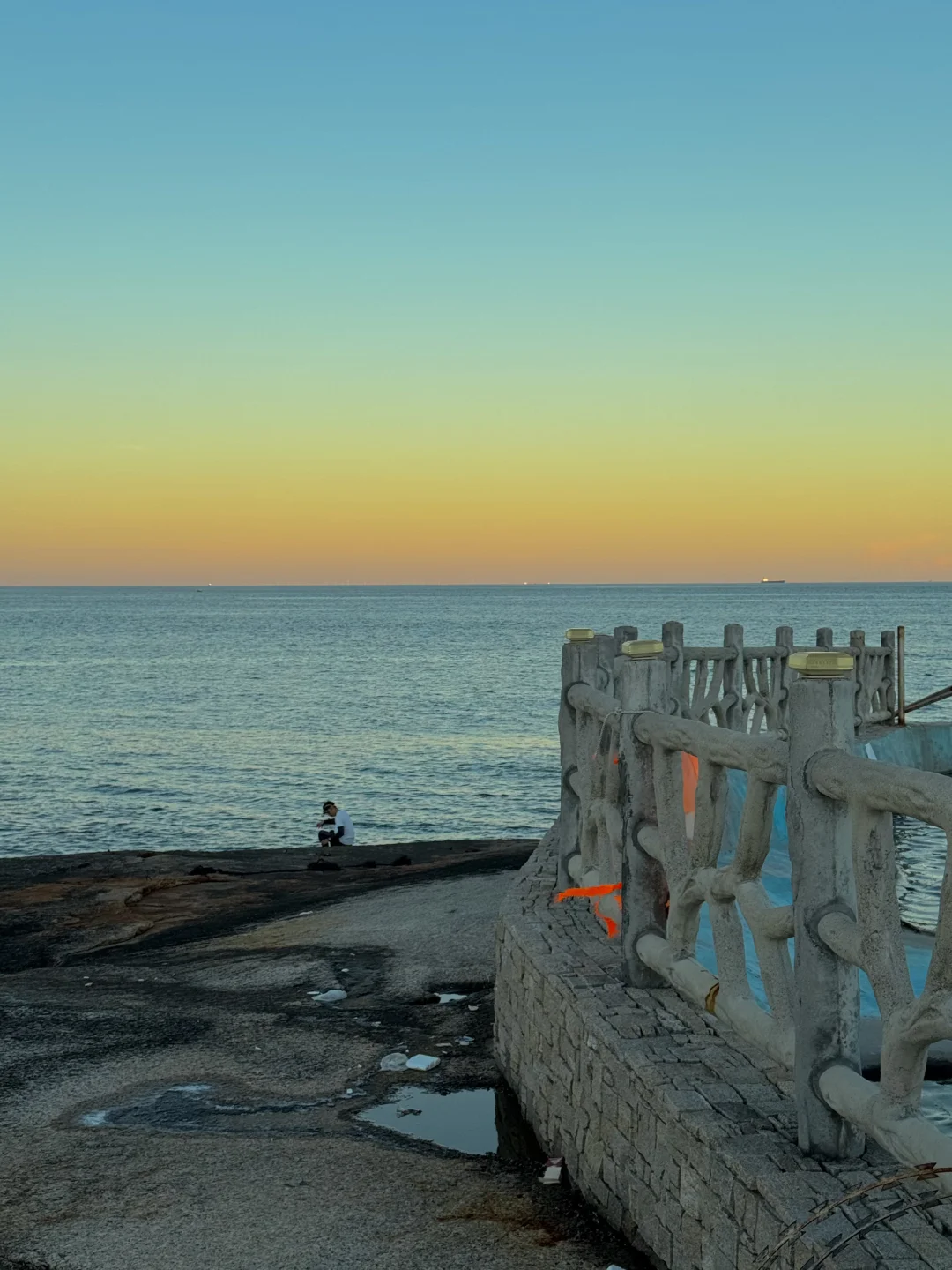 阳光☀️洒在古老石堡和礁石上,海浪拍打岩石的节奏像是自然的BGM,太阳下山后,海平面裂开一条黄蓝渐变的天际线🌅🌅
