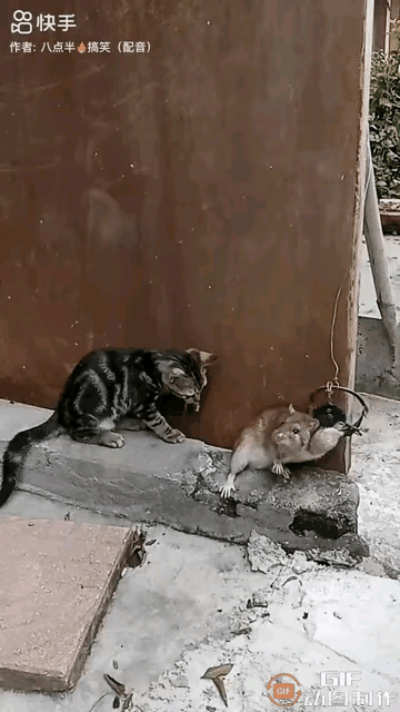 一只大老鼠,竟在独居老大爷家里肆意妄为,可把大爷给烦死了。没办法,大爷买了只小猫,指望它抓住这讨厌的家伙。 谁知道,小猫年纪小,对家里环境也不熟,几次出击,大老鼠都机灵地跑掉了。 大爷气得不行,跑去镇上买了铁夹。嘿,还真夹住了大老鼠的左爪子,疼得它“吱吱”叫。 小猫听到动静赶来,看着老鼠惨叫,慢悠悠走上前,恶狠狠地盯着,接着抬起前爪,“啪啪”地扇老鼠耳光。 老鼠不服气地站起来,小猫打得更用力,仿佛在说:“看你还怎么跑!” 老鼠被打得赶紧低头不敢出声。 你说这小猫,虽然一开始没抓到老鼠,可最后也算是扬眉吐气了。 大家觉得小猫吃了老鼠后,真会变得更厉害吗?