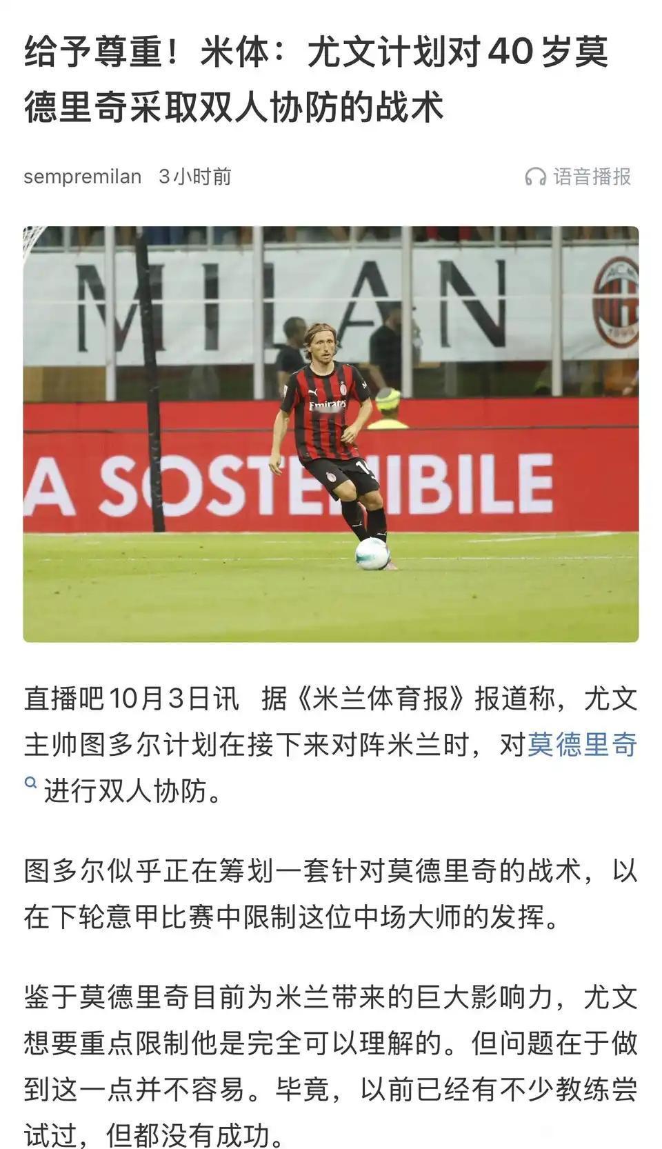 这就是尊重,本周末意大利国家德比,尤文图斯要对莫德里奇双人包夹! 这说明40岁