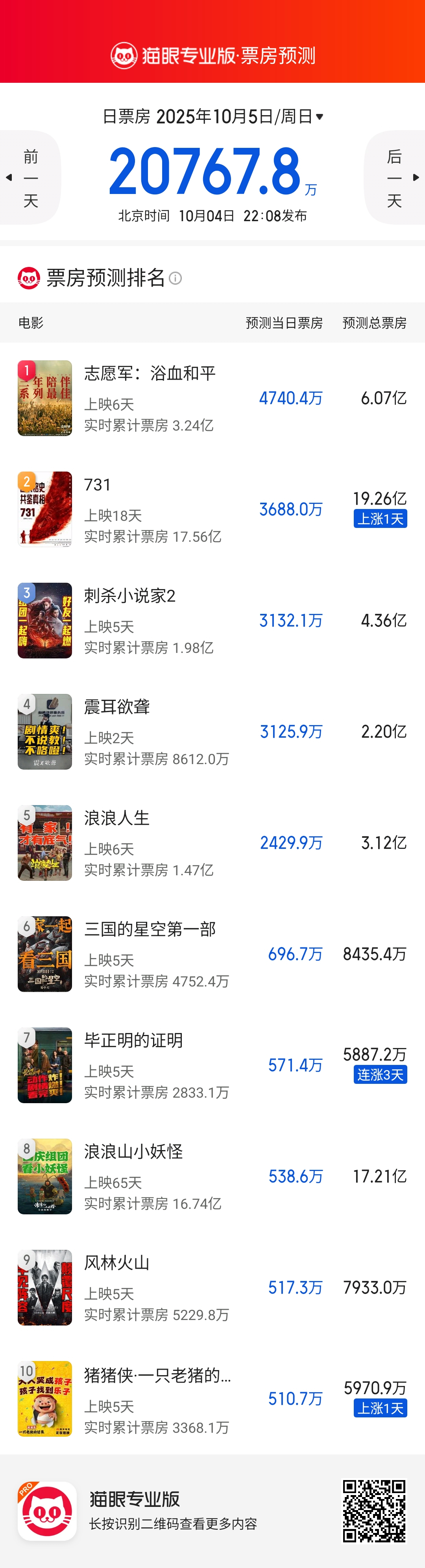 国庆档新片预测票房只有《毕正明的证明》和《猪猪侠》在涨,其他的继续跌,单片6亿都要守不住了…造浪吧国庆档