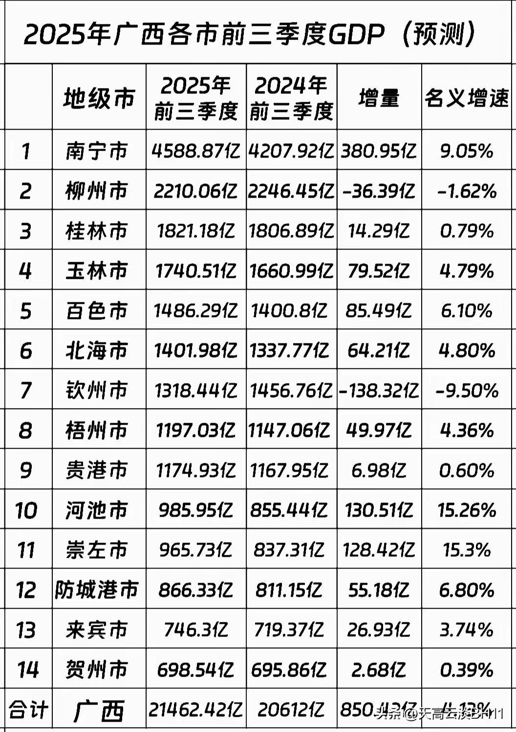 今年广西各城市第三季度GDP预测,两只“水蟹”依然是被看衰为负增长! 于是乎众人
