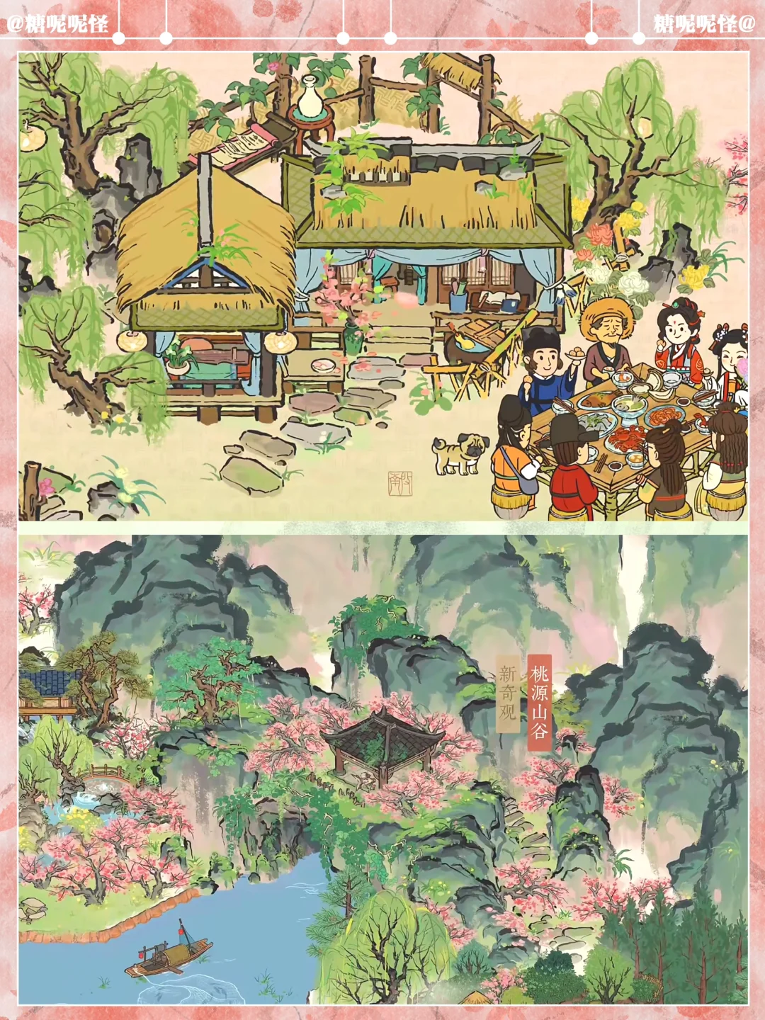 🌸4月28日起,江南百景图奇幻小镇【桃花源】上线 🌸新建筑,新居民,新民居,全新建筑画池和桃花源适配度💯