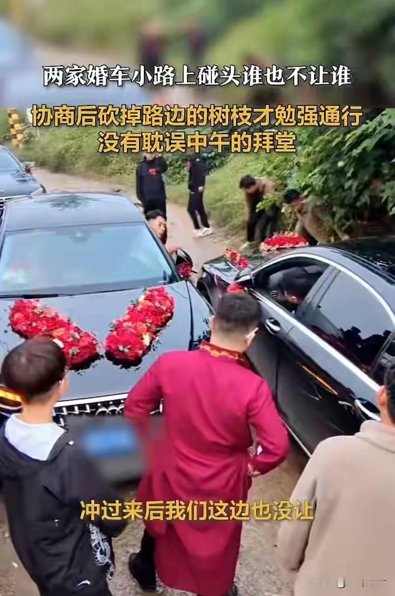 山东两婚车小路相逢,最终还是奔驰承担了所有,传统习俗到底可信不可信呢? 俗话说:婚车是不能后退的!意思就是婚车不走回头路,寓意婚后生活顺利,可以一直走到白头! 但是在狭小的乡间小路,两婚车相遇很是正常,这是谁也不能避免的!如果出现这种情况,两车都不相让的情况下,估计谁也走不了,当然也会影响到双方的良辰吉日! 山东两婚车相遇后,双方僵持到最后,众人临时把路边用树枝开宽了一点,奔驰车恰恰通过,没有影响到双方的婚礼,这是两全其美的事情! 假如在高速公路上,婚车堵车之后,不知道这样人们应该怎么做?难道直接在高速公路拜堂成亲吗? 我觉得婚姻的幸福不幸福,和这样的习俗应该是没有关系的!关键是在于两个人是否真心相爱的!是否以后懂得怎样经营自己的婚姻!