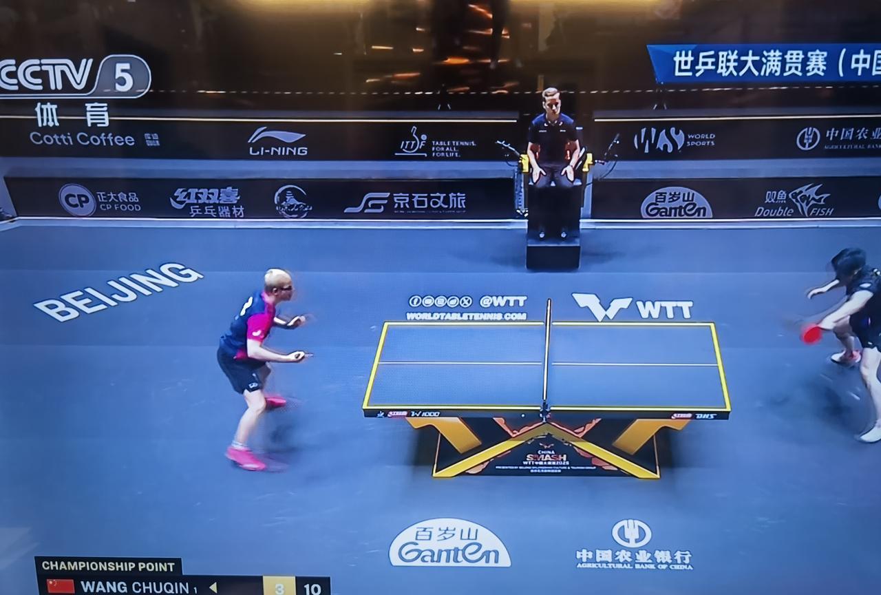 王楚钦夺冠!王楚钦实现了WTT北京站三冠王!王楚钦决赛的对手是法国的勒布伦,这场比赛,央视解说用的词是完胜、释放、酣畅! 这场比赛可以说是王楚钦在心理上完全是压倒了对方,也就是说,这个冠军是我的,在王楚钦的心中已经坚定!王楚钦这场比赛战术就是速战速决!从而,王楚钦11:7,11:2,11:5,11:7,完胜夺冠!从而实现了本次大赛的男双,混双,男单三冠王!