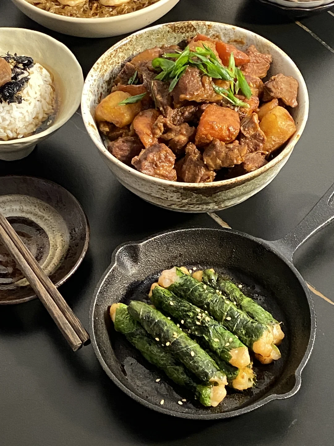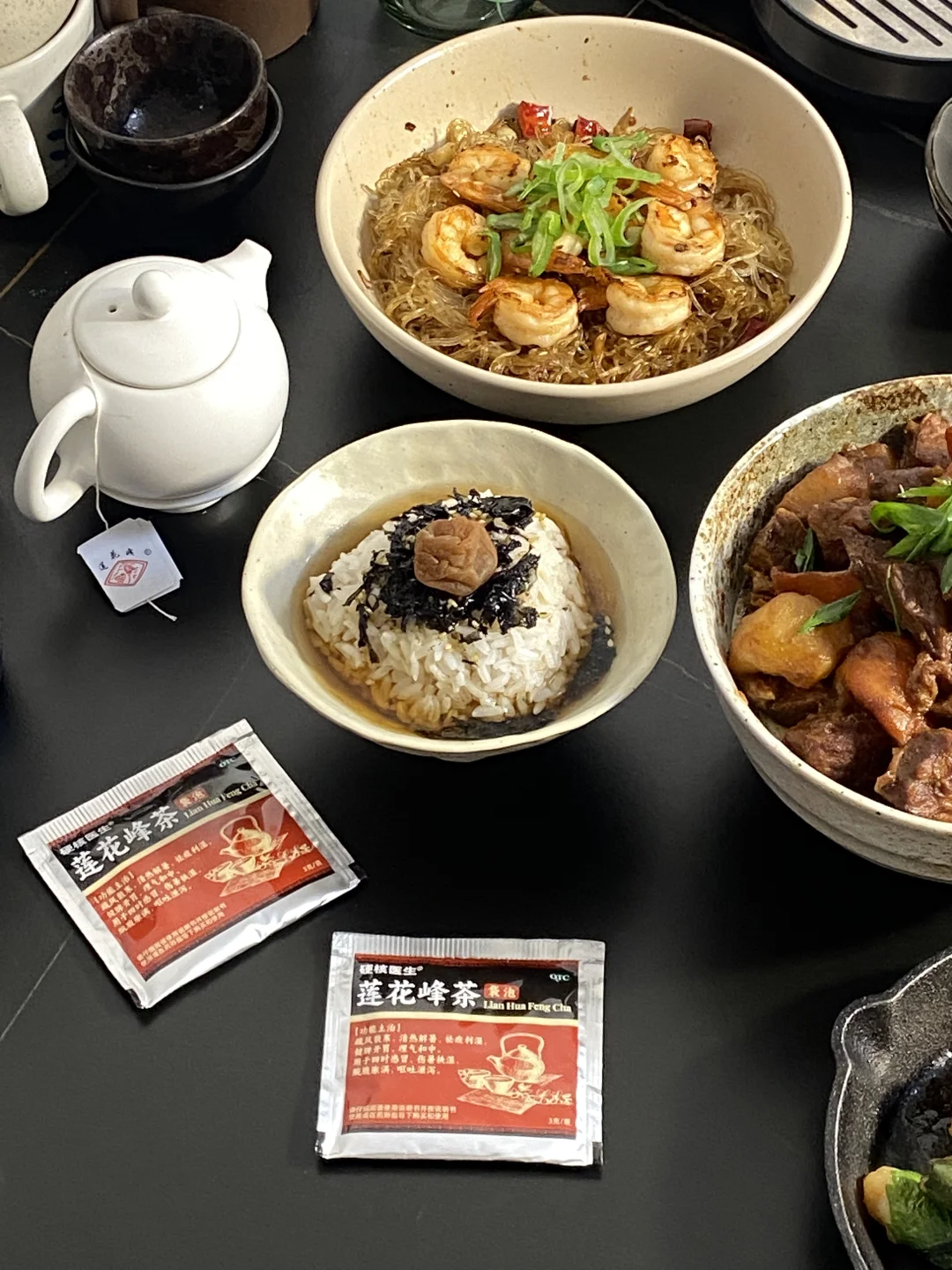 今日食谱📜茶汤泡饭紫苏虾滑卷红烧牛腩🥢