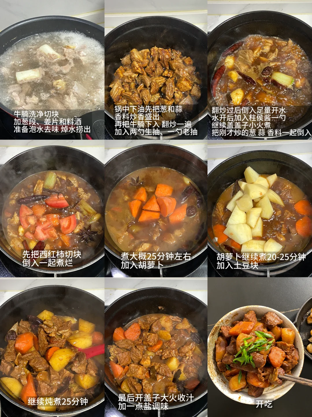 牛腩1斤|土豆|胡萝卜|西红柿|柱侯酱|葱姜蒜|香料