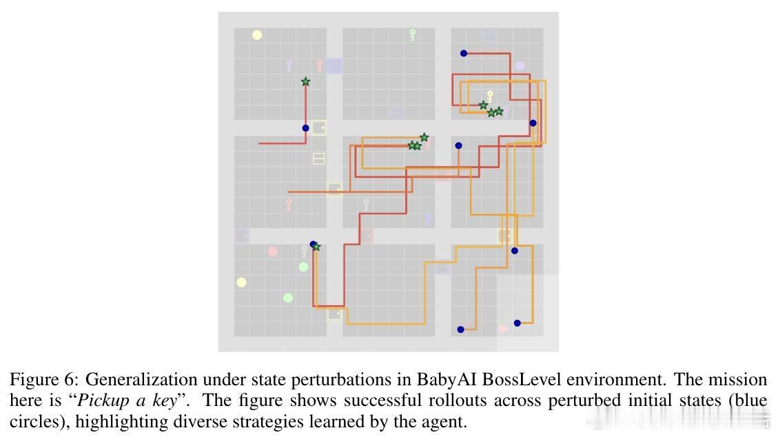 - 在BabyAI、MiniGrid和Algorithmic Creativity任务中,多彩PPO显著提升成功率和任务覆盖率,尤其在pass- 多彩PPO在状态扰动下泛化能力更强,显示出更鲁棒的探索策略。