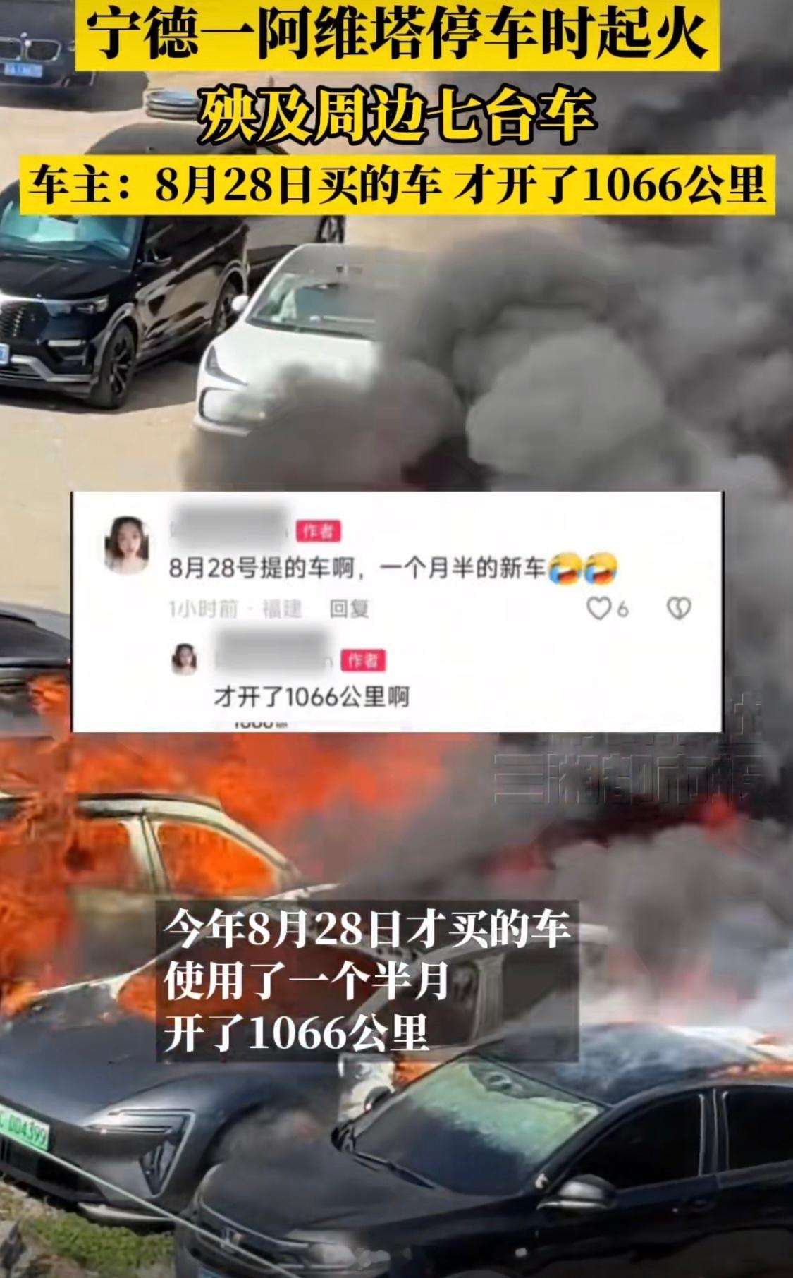 不信谣不传谣,等一个后续调查,烧了这么多辆车,万幸没有人员伤亡,天气炎热,电动车会自燃也是正常的,人没事就好[祈祷]宁德自燃小车才开了1066公里阿维塔自燃后厂家回应