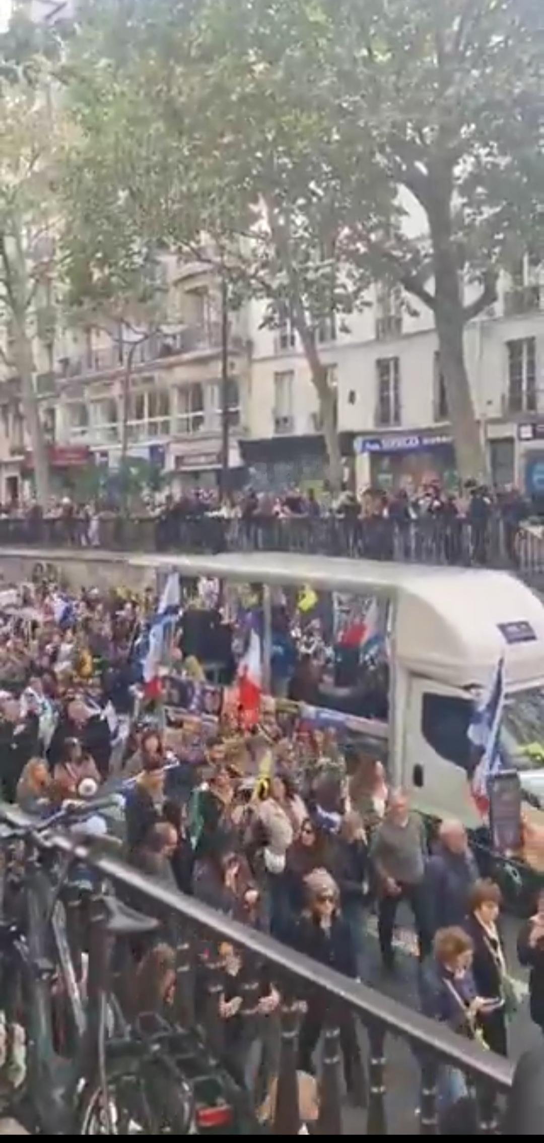 今天,法国有数千人走上巴黎街头,他们高举法以两国国旗,支持以色列。