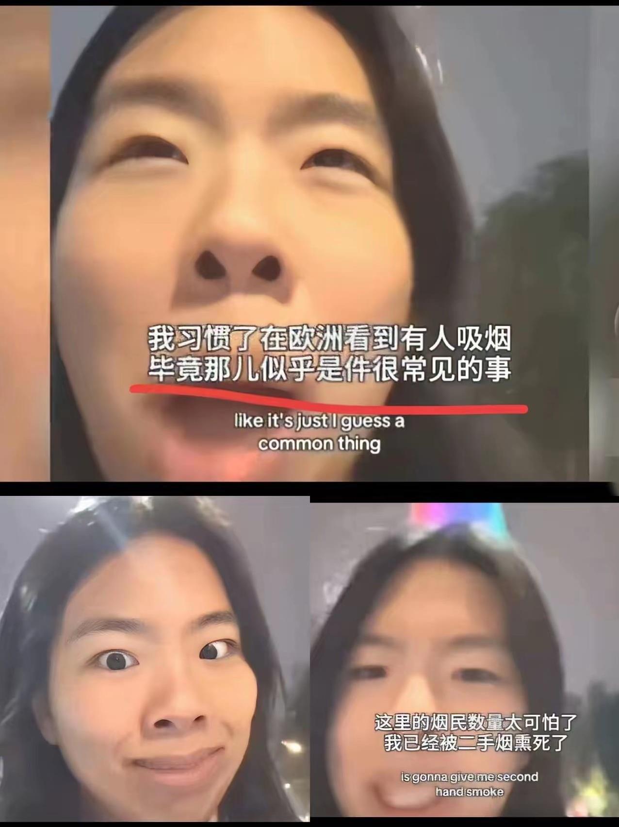 2025年了,还在舔欧美的人就是坏,并且是越舔长得越丑。 这个女的,在欧洲生活的时候,欧洲人吸烟,她吸二手烟,然后她说很容易理解,并且已经习惯了。结果同样的事情,到了中国,就变成了受不了了。 这样的人,不知道她父母怎么样教的,还是天生就是看不起中国的人,被欧美洗脑的连自己的祖宗是谁都不知道了!在我看来,欧美人不管是素质还是能力,还是天生的血肉,就是所谓的血脉,都比我们差多了。看看那些跟欧美结合的女人,生出来的儿女都看着有点四不像了,难道这些人不知道吗?