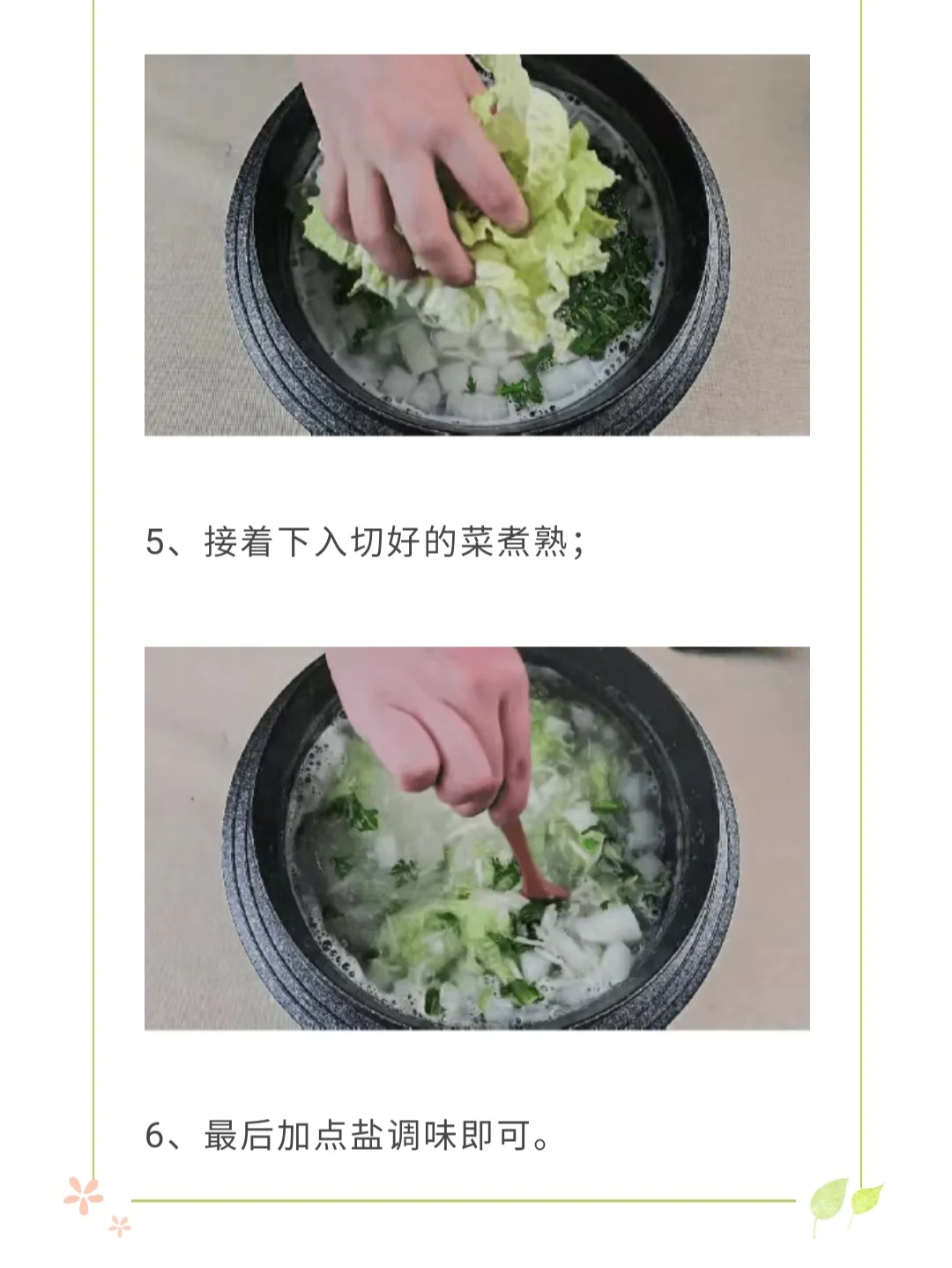 [种草R]春风化雨的滋养下,众多春菜也应春时而生,要么清香脆嫩,要么清甜多汁,我们的餐桌也是时候装点些春意了,春的滋味不容错过,让我们把春天吃进肚子吧! 早在几百年前,大文学家苏轼就给我们提供了思路。 《东坡羹颂》 中有记载一道东坡羹,当时苏东坡的做法是将白菜、萝卜、荠菜等时鲜蔬菜与米粒巧妙融合,烹制而成的一道色香味俱全的汤菜。蒸屉下面是的菜羹、蒸屉上面是米饭,这样一来,锅中的菜羹以及蒸屉中的米饭都一次加工而成了。 考虑到现在荠菜还没上市,我们今天就把荠菜换成应季的茼蒿、豆芽菜,又用米汤来煮制这道汤羹,这样蔬菜的清香与米香融合在一起,也是别有一番风味。 [清单R]原料:茼蒿、黄豆芽、大白菜、白萝卜、姜蓉、粳米30g 做法如上图 这道东坡羹非常清爽解腻,能很好的打开我们的胃口,又不会增加负担,有朋友会担心白菜、白萝卜过于寒凉,但是姜蓉的加入就很好的解决了这个问题,总体来说,这道汤羹疏通身体,滋养月卑胃,还具有升发之力,春天满满的生机都汇聚到这里啦! 罗大伦 育儿 2025我的育儿关键词 东坡羹 春菜 春季养生 节气养生 儿童食疗 茼蒿