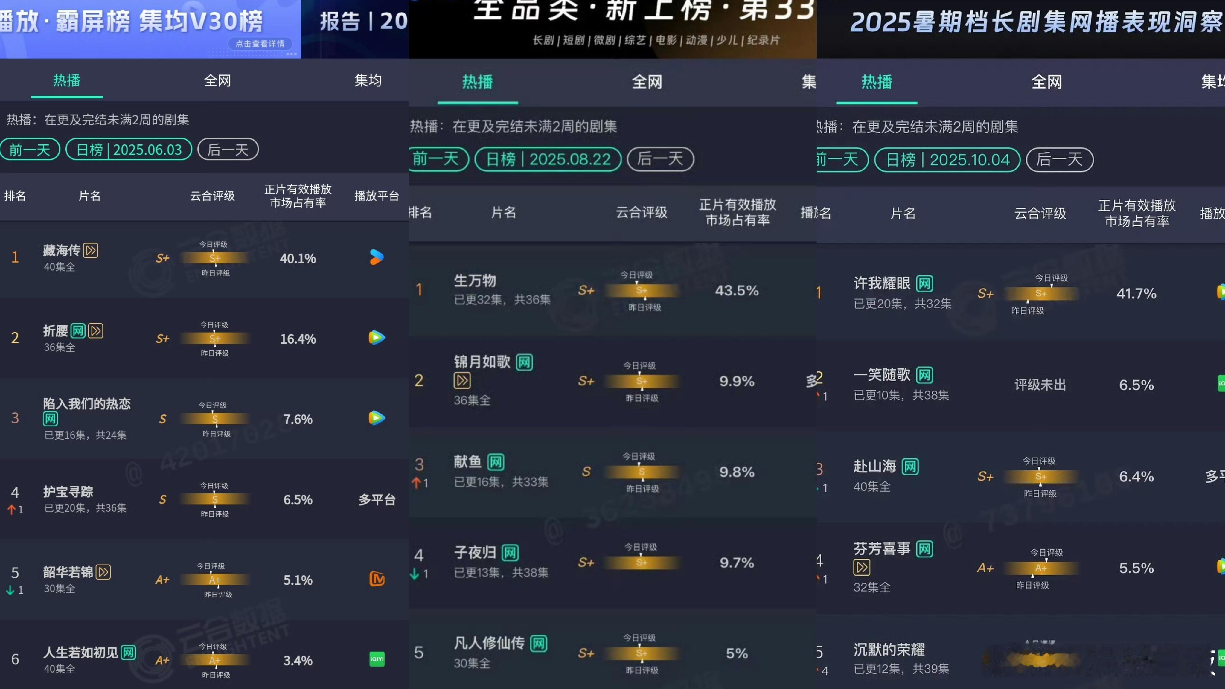 2025年三部云合破40%剧集👖:《藏海传》肖战🥝:《生万物》杨幂、欧豪🐧