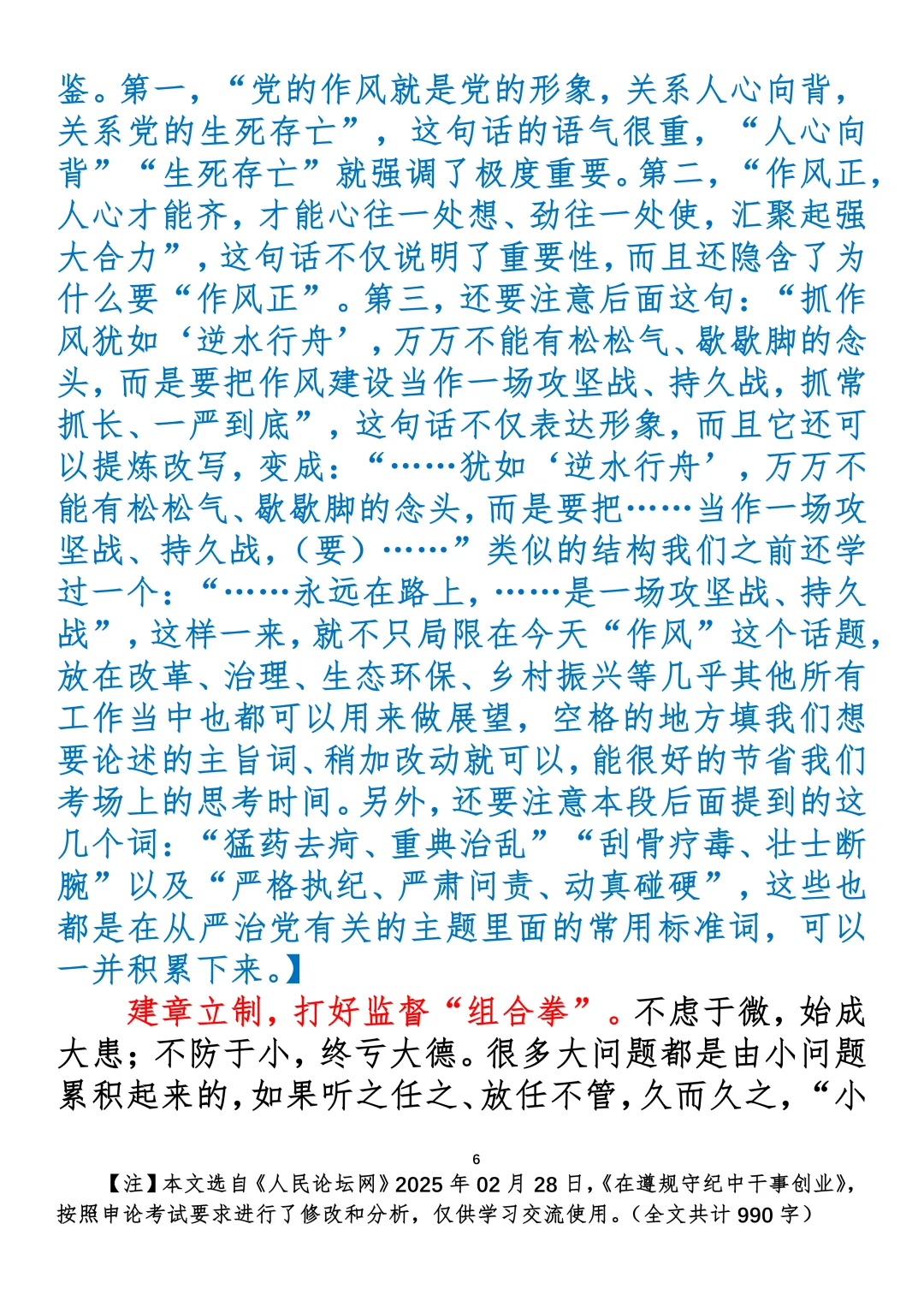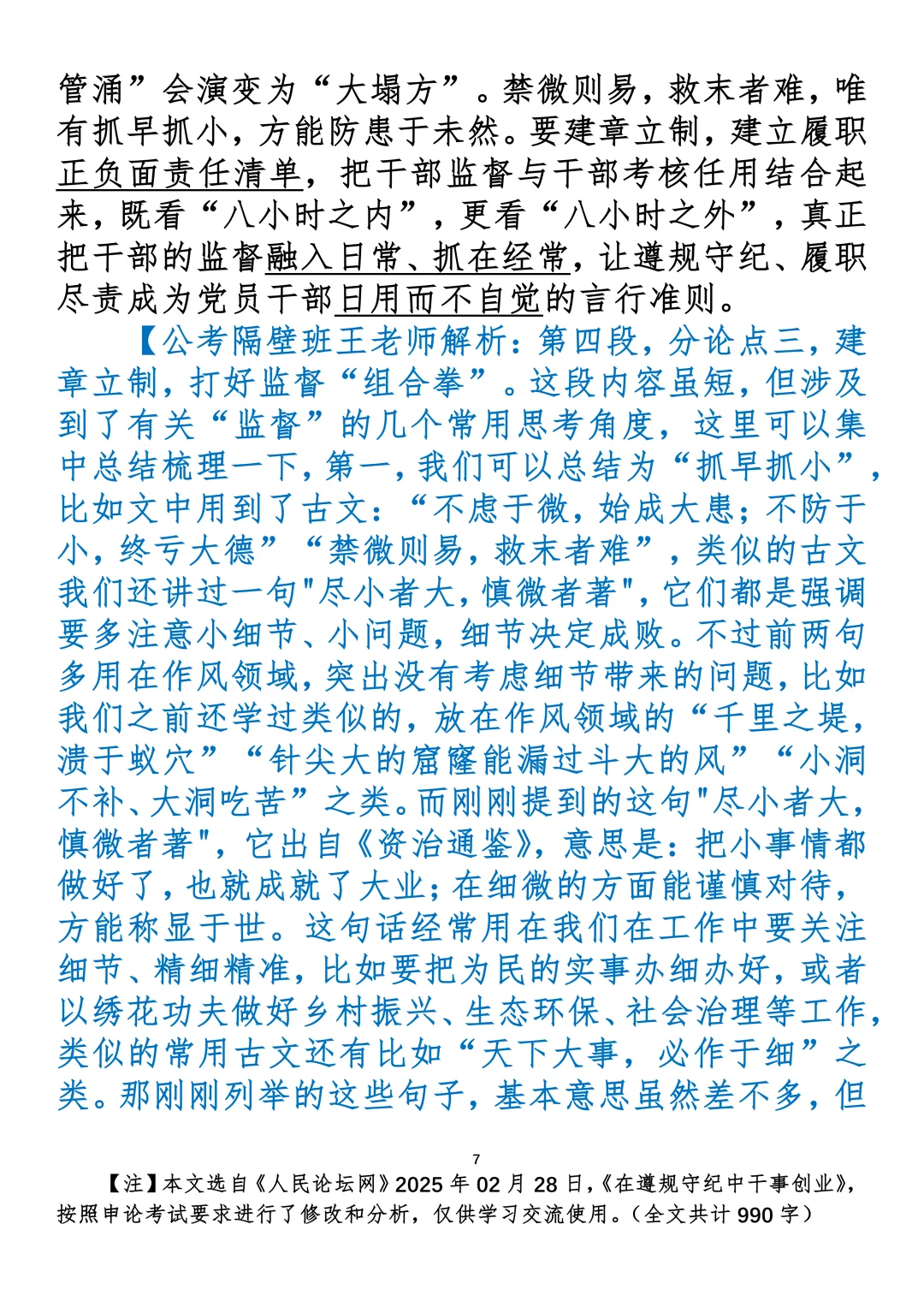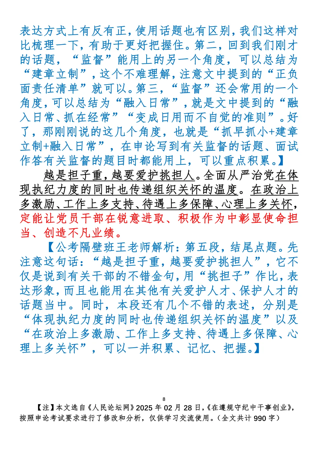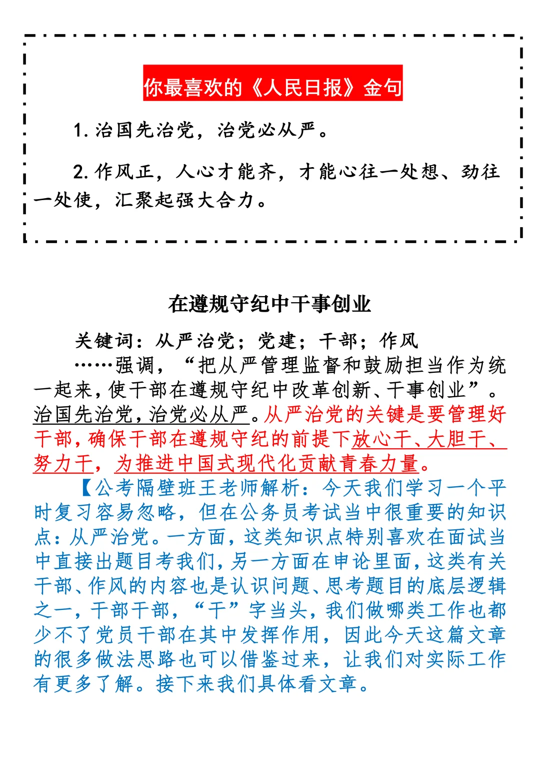 如何抄写:每日抄写文章发在“公考隔壁班王老师”账号,红色字是重点句和结构句,黑色字是正文,蓝色字是解析,大家抄写时不必抄蓝色字。建议先通读全文,做到心中有数再开始抄写,效果会更好。关于文章:抄写文章来源于人民日报,但每篇文章我都根据申论考试要求进行了修改:一是重写或修改开头、结尾;二是统一段首句句式结构;三是调整段落字数,使文章结构更均衡;四是简化复杂长难句,使之更具可模仿性。每篇文章无论修改多少,都是基于申论考试要求,毫无对人民日报文章品评之意。(此处致敬人民日报)
