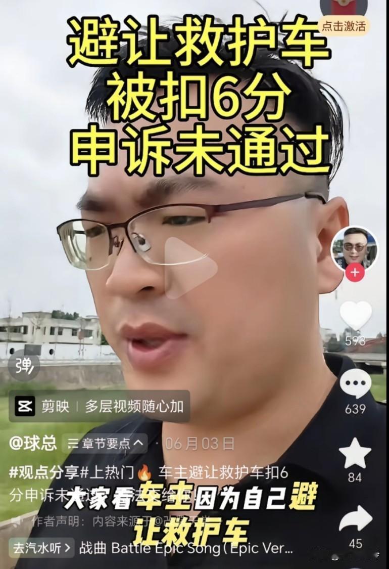 救护车司机极力劝说私家车司机让路,女司机依然摇上了窗户: 拍照扣分怎么办? 如果被拍了,你可以请假去交管所申诉,如果交管所让你提供证据,你可以去取证,找现场目击证人,然后然后目击证人请假陪你去交管所证明,不会冤枉你的,该让就让一下。 遇到特种车辆,前面的车越线了就扣分,然后到交警队说明情况才根据调查撤销处罚,现在人很忙没有时间去证明自己,不如自己不闯红灯不压线省的麻烦。可能是让的成本太高,申诉太麻烦而且还会申诉不过吧。所以根本原因,要是让申诉流程简化,申诉成本降低,人人都会让。