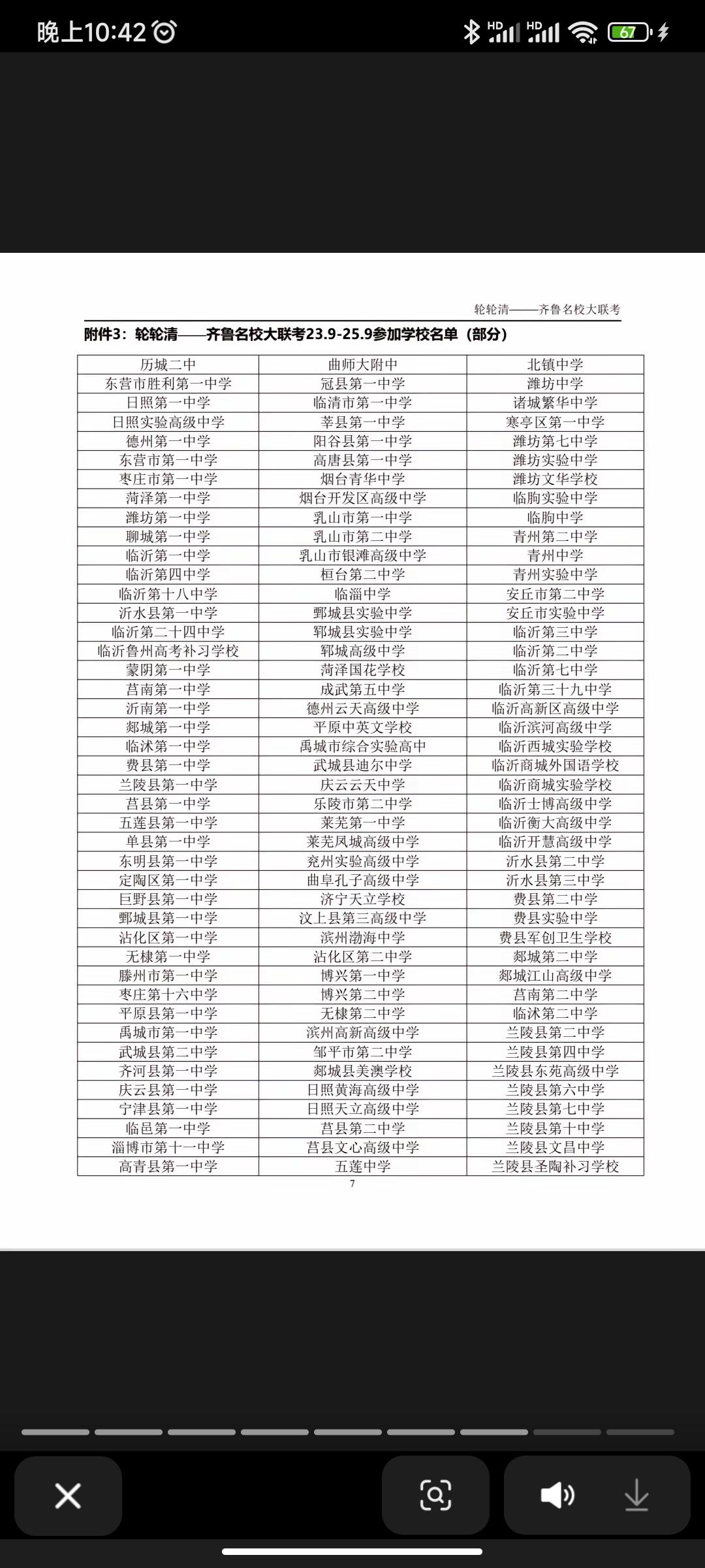 最近网上流传的高三国庆假期后轮轮清齐鲁名校大联考学校名单,我感觉是假的。将近二百多所学校,还有浙江后江苏的学校,怎么可能呢?一般来说,一个机构组织的联考,能有几十所学校参加就不错了。再说了,人家外省的学校,考山东的题,有意思吗?