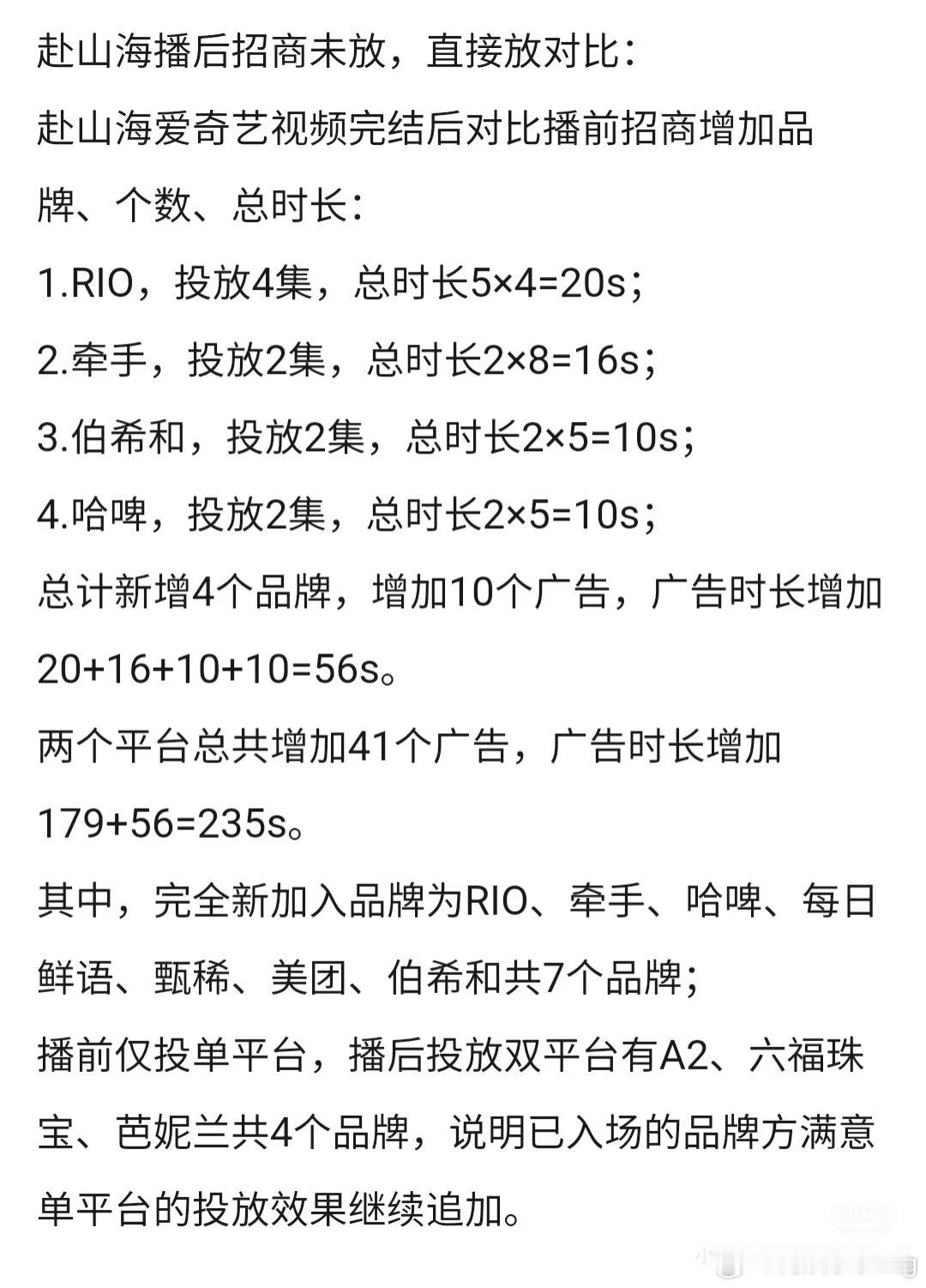 成毅赴山海播前招商对比播完广告双平台新增12个品牌,41广[彩虹屁][彩虹屁]