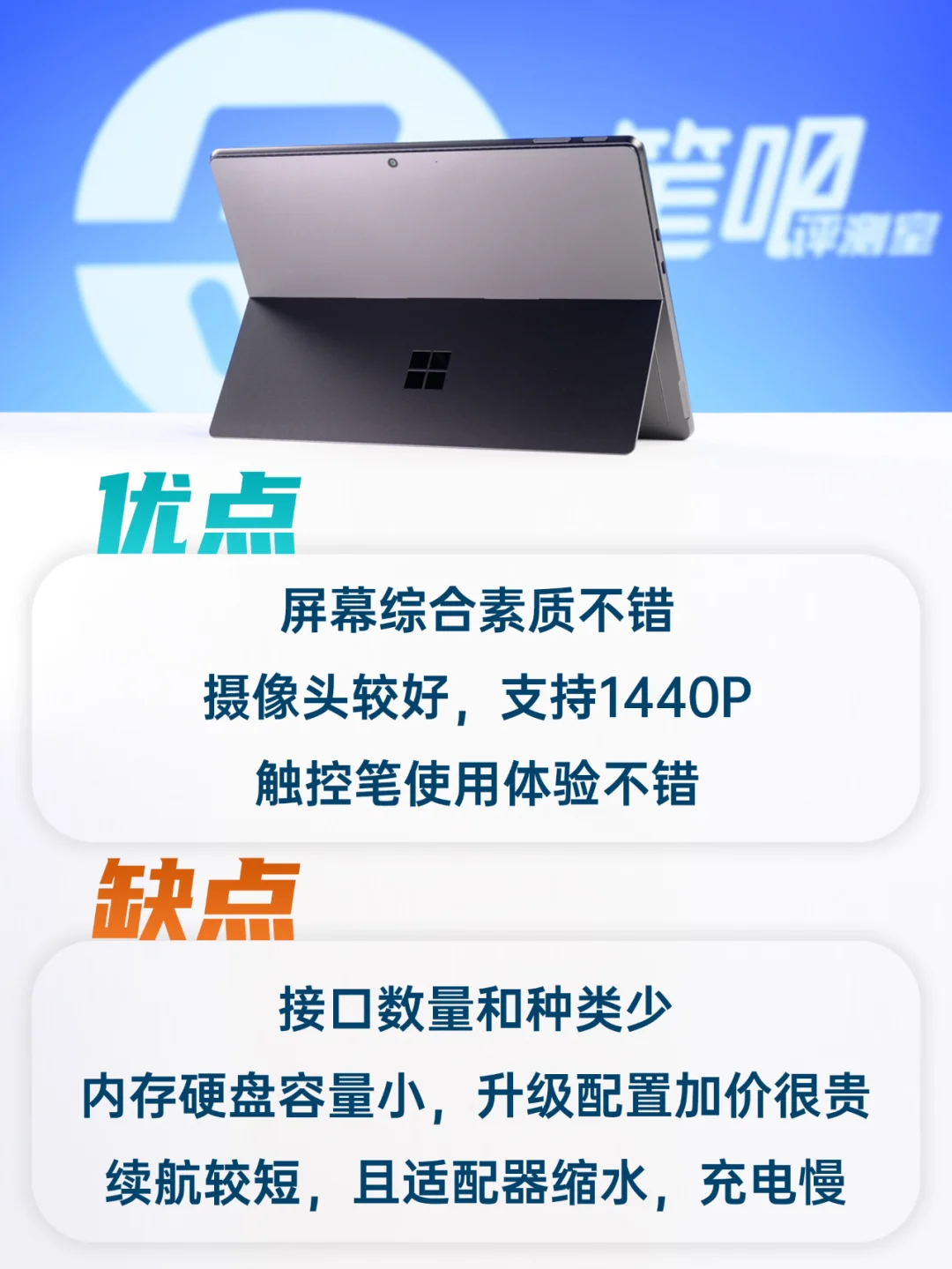 更离谱的是,去年测Pro 9我们吐槽它阉割了3.5mm耳机接口,今年更厉害,把适配器功率从65W阉割到39W,很好奇Surface Pro 11还打算阉割啥?[黑薯问号R]