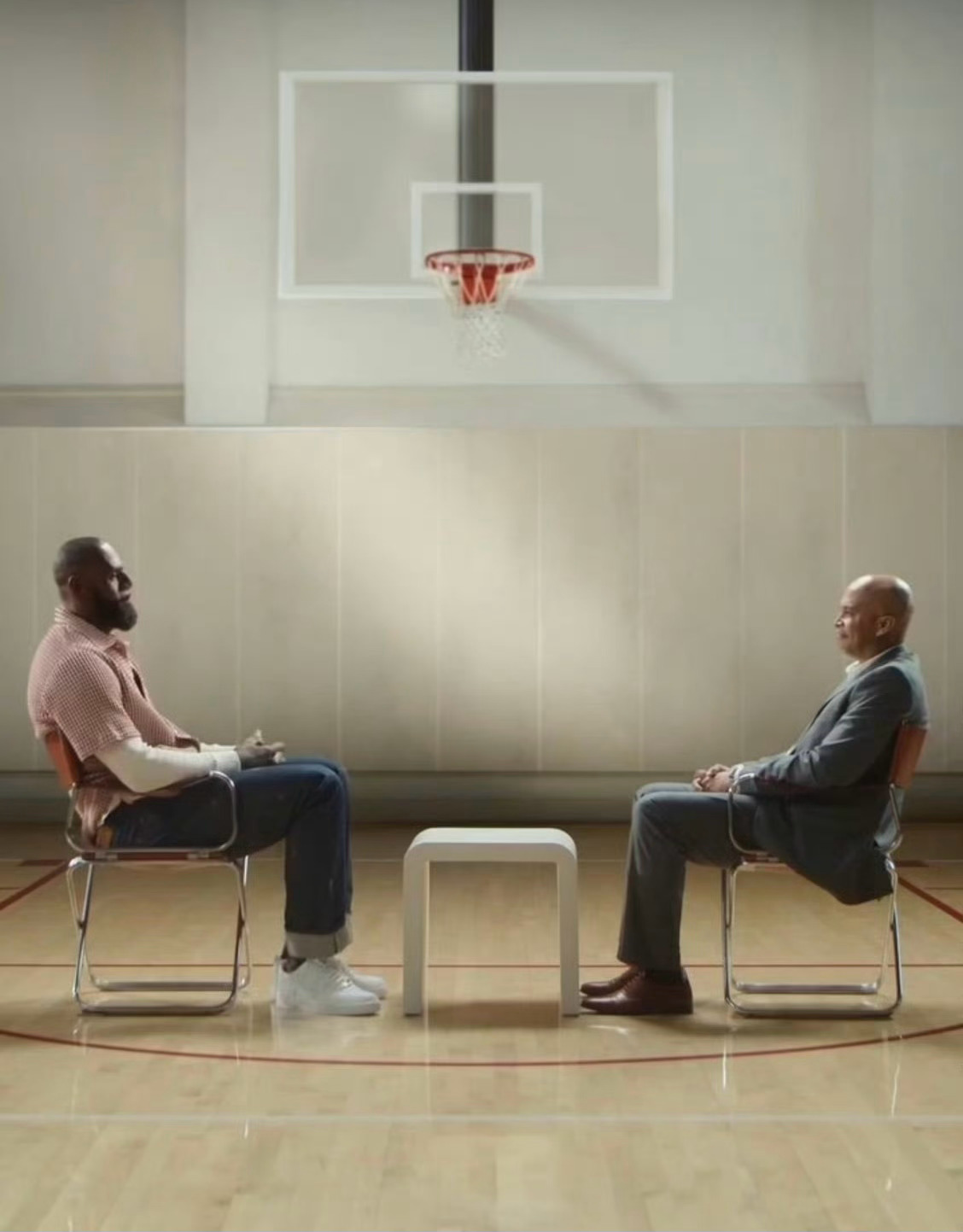 采访布局和穿的衬衫,都和当年“把天赋带到迈阿密”时一模一样
