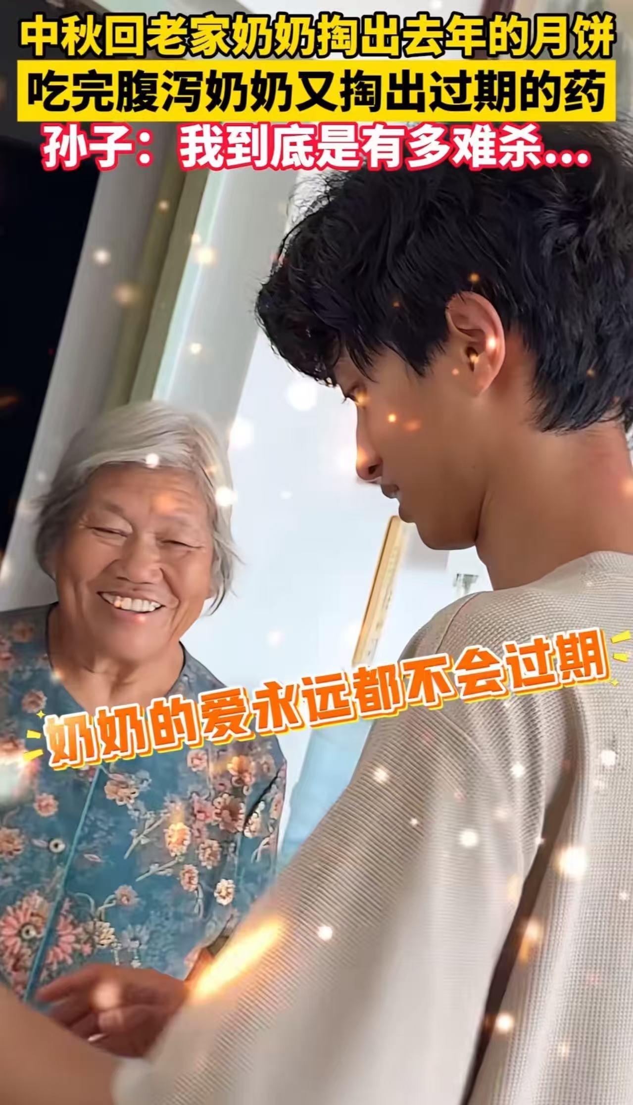 “笑着笑着就哭了!”河北廊坊,孙子中秋回老家看奶奶,奶奶拿出月饼给他吃,孙子吃完腹泻,一看月饼是去年的!奶奶又拿来药,结果也是过期的!孙子:我到底是有多难杀?网友:不是月饼过期了,是你来晚了! 孙子来看自己,奶奶那高兴劲儿就别提了,脸上洋溢的笑容就像盛开的花朵。 她赶忙把自己一直舍不得吃的月饼拿了出来,递到孙子手里,那眼神里满是疼爱和期待。 孙子呢,也没多想,接过月饼就大口吃了起来,不一会儿,一块月饼就进了肚子。 可没过多久,麻烦就来了。孙子突然感觉肚子一阵剧痛,紧接着就开始腹泻不止,整个人难受得直冒冷汗。 他心里直犯嘀咕:“我也没吃什么乱七八糟的东西啊,怎么突然就肚子吃坏了呢?” 这时,他才想起了奶奶给的月饼,赶紧拿起包装袋一看,好家伙,这月饼居然是去年的,早就过期了! 孙子看着过期的月饼,真是哭笑不得,他无奈地对奶奶说:“奶奶,你这月饼是去年的啊,都过期了……” 奶奶一听,心疼得不得了,连忙说:“你等着,我给你找药去啊……” 不一会儿,奶奶就拿着药回来了。孙子这次可长记性了,先仔细看了看药的保质期,结果这一看,又让他哭笑不得——这药居然也过期了! 孙子忍不住开玩笑说:“奶奶,我这是有多难杀啊……” 旁边的姐姐看着这一幕,笑着说:“你看,咱奶多心疼你,啥好的都给你留着……” 后来,姐弟俩仔细把奶奶的药都检查了一遍,把过期的都扔了。在这个过程中,他们心里既感动又有些无奈。感动的是奶奶那份深沉的爱,无奈的是奶奶这种不舍得扔东西的习惯可能会给健康带来隐患。 此事引发了热议,有网友说,我奶奶也这样,中秋回老家,她拼命拿牛奶给我孩子喝,我一看,都是去年的……都怪我,不能经常去看她! 也有网友说,看哭了!想起我小时候我外婆。糖果零食饼干,给我留着都发霉了,她还是舍不得吃! 还有网友说,想起祖母拿着长绿毛的粽子给我吃,还是藏在床头的!老人都是这样的! 中秋温情“惊魂”:过期背后的爱与反思 月饼和药都会过期,但奶奶的爱永远都不会过期!网友那句“不是月饼过期了,是你来晚了!”更是戳中了无数人的心。 然而,我们也不能忽视老人这种不舍得扔东西背后所隐藏的安全问题。很多老人因为想把好吃的留给子女吃,却不知道这可能会给健康带来严重的危害。 作为子女,我们不仅要享受老人给予的爱,更要关心他们的健康,经常去看看他们,帮他们清理东西,不要等到“来晚了”,才去弥补那些因为疏忽而造成的遗憾!