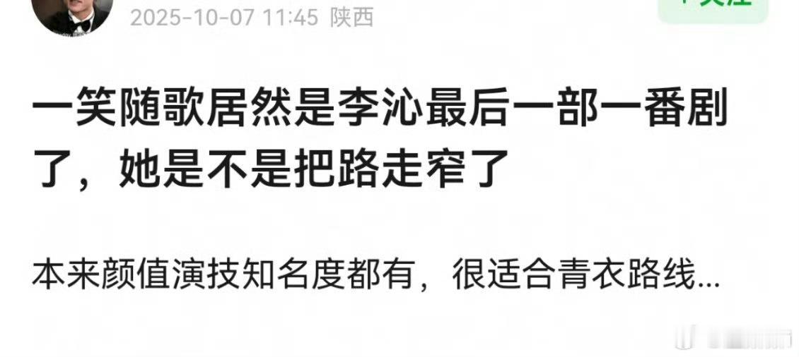 做了太多男演员的挂件女主,作为官配存在占了女主名头但人物太单薄无法引起观众共鸣可能红利还不如配角,之前说过一句话李沁的出现填补了内娱流量生转型没有合适女主(有颜值+有国民度+有演技+愿意二番)的空白