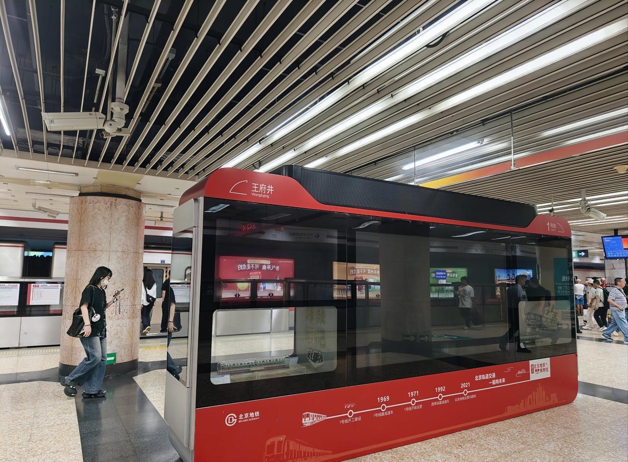 王府井地铁站位于北京市东城区,是北京地铁1号线与北京地铁8号线的换乘站。 车站位置位于东城区东长安街与台基厂大街-王府井大街路口,1号线站层呈东西向布置,8号线站层呈南北向布置。 截至2024年4月,王府井站共开放有11个出入口,如A口位于东方广场内部地下一层,B1口位于东长安街北侧、王府井大街东侧,E3口位于王府井大街东侧偏北,可通往王府井步行街、王府井百货等。 车站设计融合传统建筑元素与现代风格,站厅层以王府建筑为主题,柱子为大红色,上下楼梯区域有百年老字号牌匾和现代王府井商业街风貌的设计图案,换乘通道连接处有参考传统宫门样式的红色结构。 周边设施有北侧有王府井步行街、王府井百货等,东侧有东方广场等,西侧有北京饭店等,南侧邻东郊民巷等遗址。