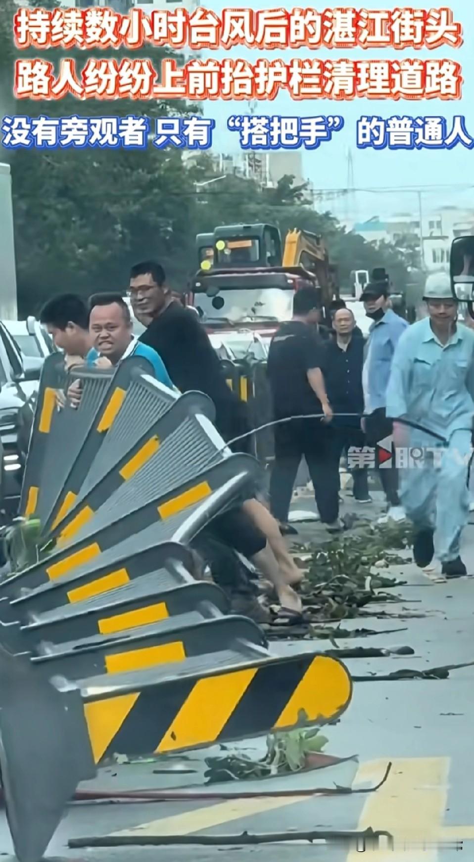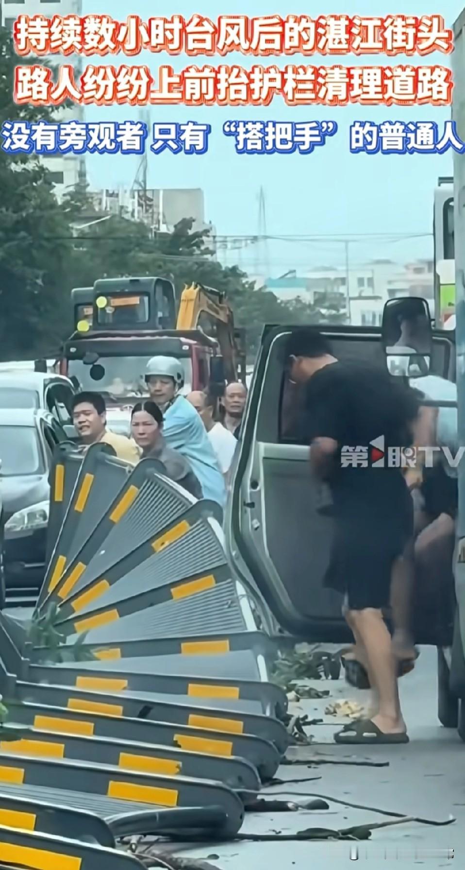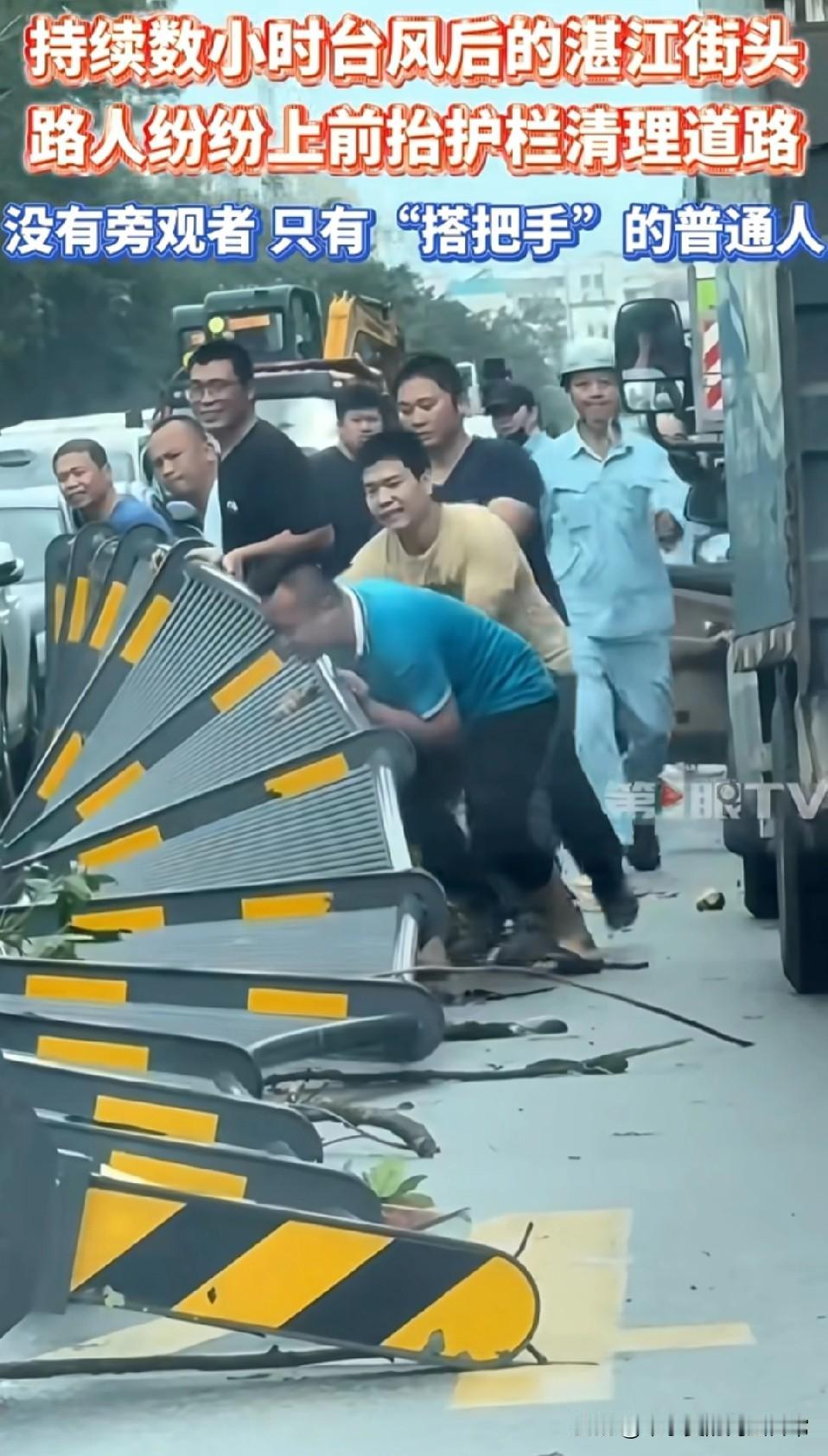 湛江台风后无旁观者,只有搭把手! 台风“麦德姆”刚走,湛江街头的一幕就燃爆了!护栏倒了一片,路人却没一个旁观的,全扎堆儿上前“搭把手”抬护栏、清路障。这画面,把“众志成城”演成了现实版! 有人说“这才是中国人的底色,灾难面前从不含糊”,有人感慨“平时各忙各的,关键时刻秒变‘战友’”。 没有旁观者,只有一群“搭把手”的普通人。你觉得这种“湛江式互助”,是不是比台风更有力量?