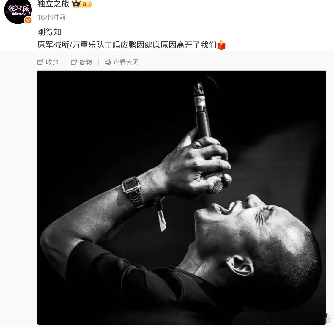应鹏去世7日凌晨,发文称:原军械所/万重乐队主唱应鹏因健康原因离开了我们,年仅