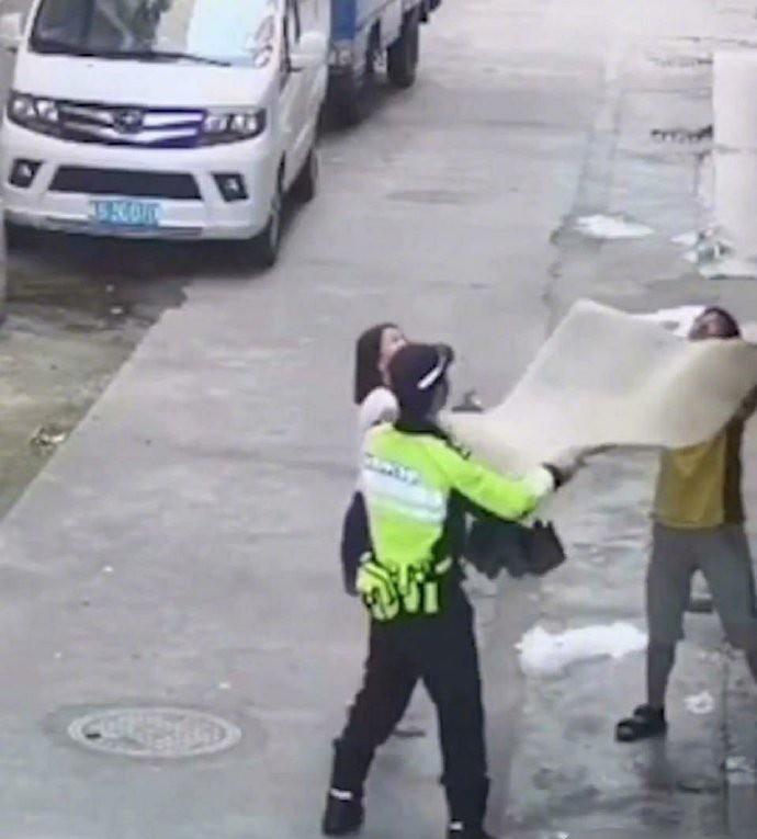 两位民警,当时靠一条毛毯,成功接住了一名坠楼婴儿,拯救了一条小生命,为他们点赞