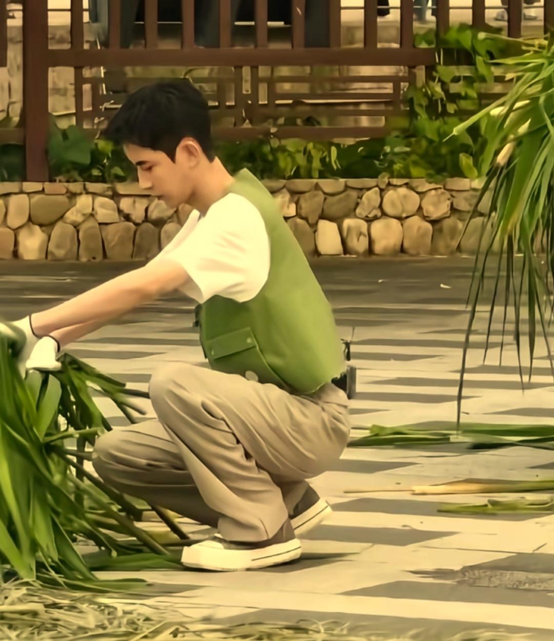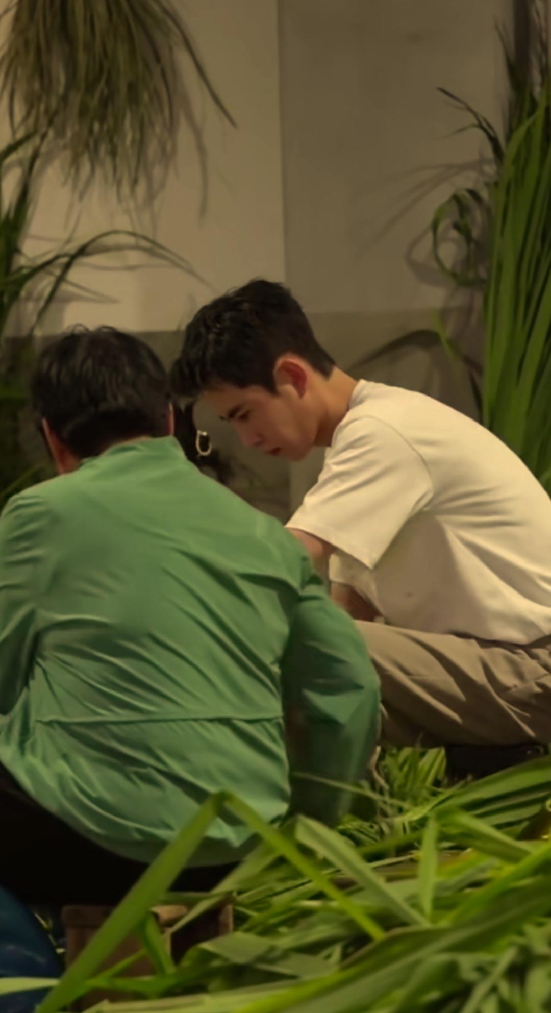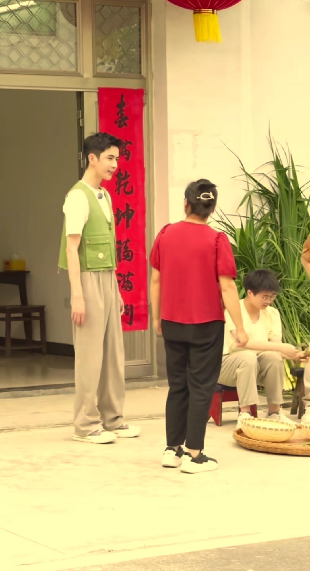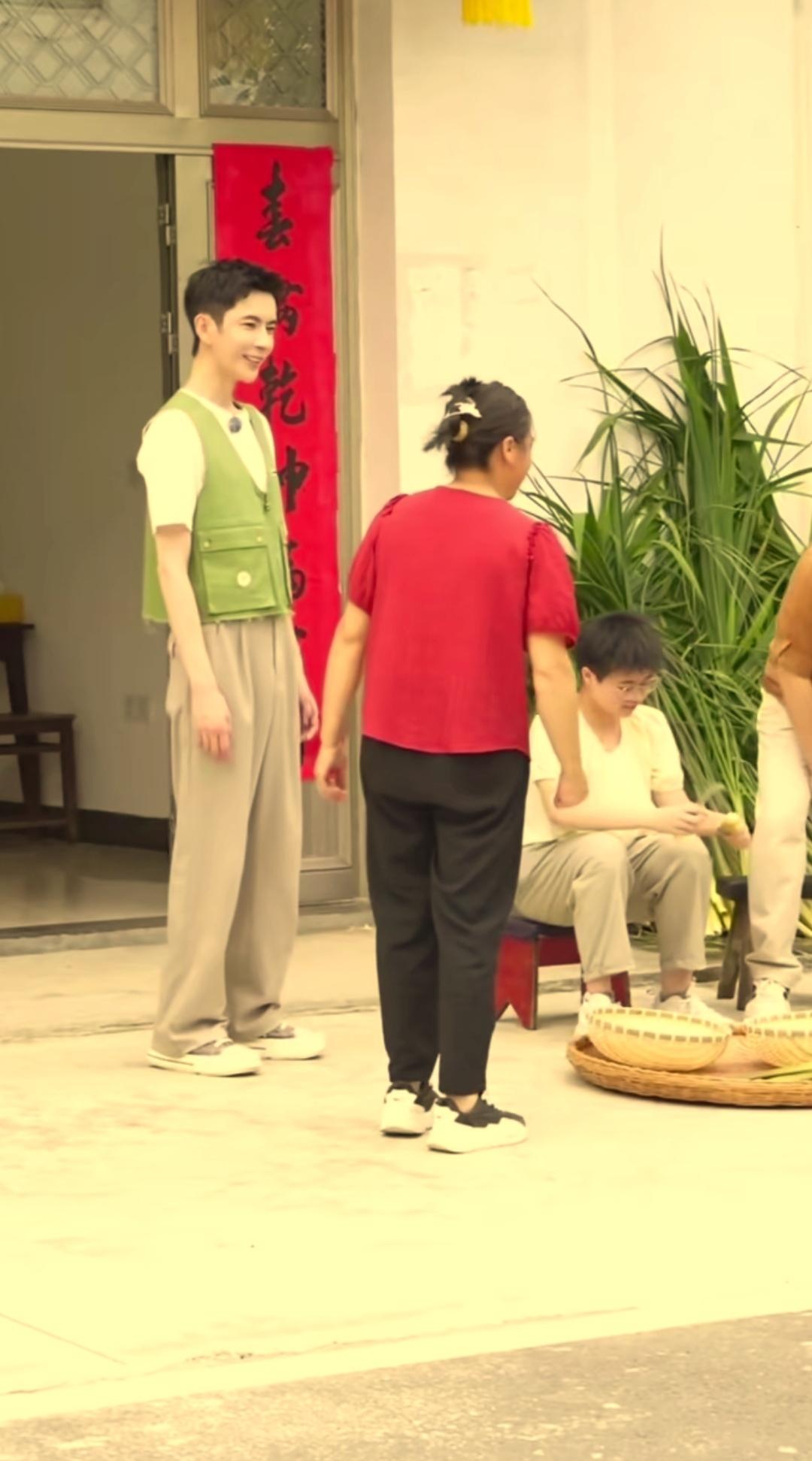 他当初在乡下支教应该是他最放松最快乐的时光吧! 看他旁边这位穿大红色短袖的中年妇女很淳朴热情,笑脸满面,两个人又说又笑的,如果他只做个普通的大帅哥,现在应该早结婚生娃了,家庭幸福美满。 可惜没有如果……