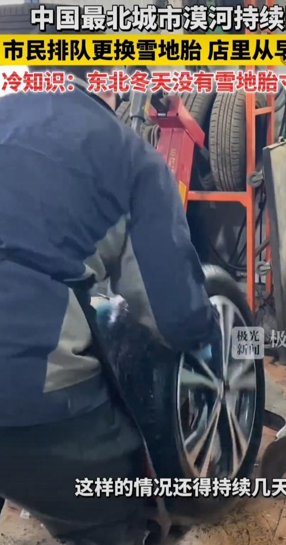 10月14日,“神州北极”漠河迎来今冬首场暴雪,截至中午降雪量达10.3毫米,气象台发布了暴雪黄色预警。这暴雪让漠河成了冰雪王国,吸引众多南方游客来看雪、玩雪。 不过,暴雪也给当地交通带来挑战。为保障行车安全,私家车主纷纷去换雪地胎。早上六点半就有人去轮胎行排号,到时候已经排了六七十台车,店里从早忙到晚,换胎得持续好几天。 漠河全年平均气温约 -3.5℃,极端最低气温达 -53℃,冬季换雪地胎很有必要。这场雪拉开了黑龙江冰雪旅游的序幕,也让漠河热闹起来。
