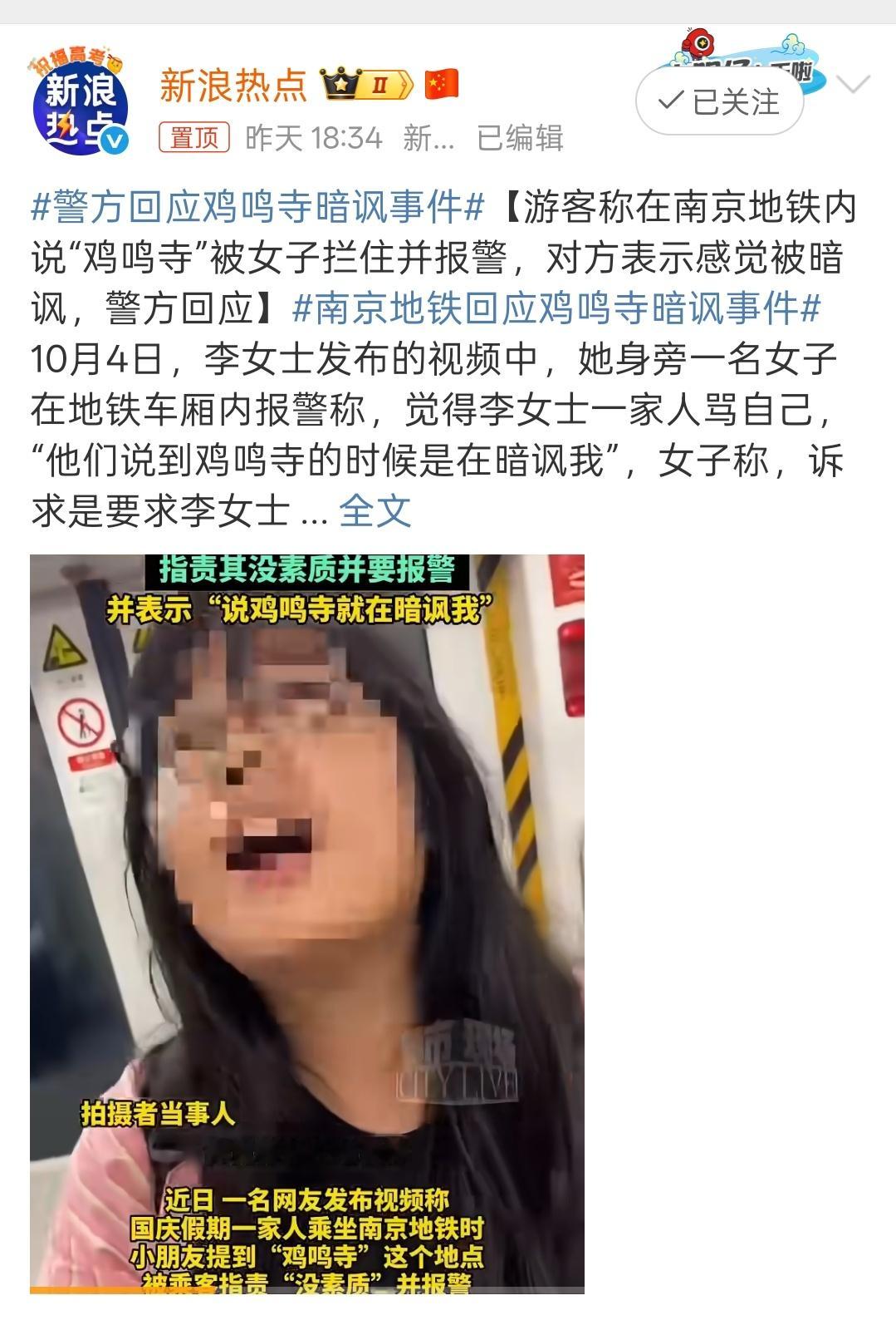 南京地铁回应鸡鸣寺暗讽事件南京的夫子庙、鸡鸣寺、中山陵等很多景点在“非典”之前就去游玩过。没想到这次鸡鸣寺以-酱紫的形式热搜了[允悲]感觉那女的太敏感了点吧。现在很多人都知道了这个事了