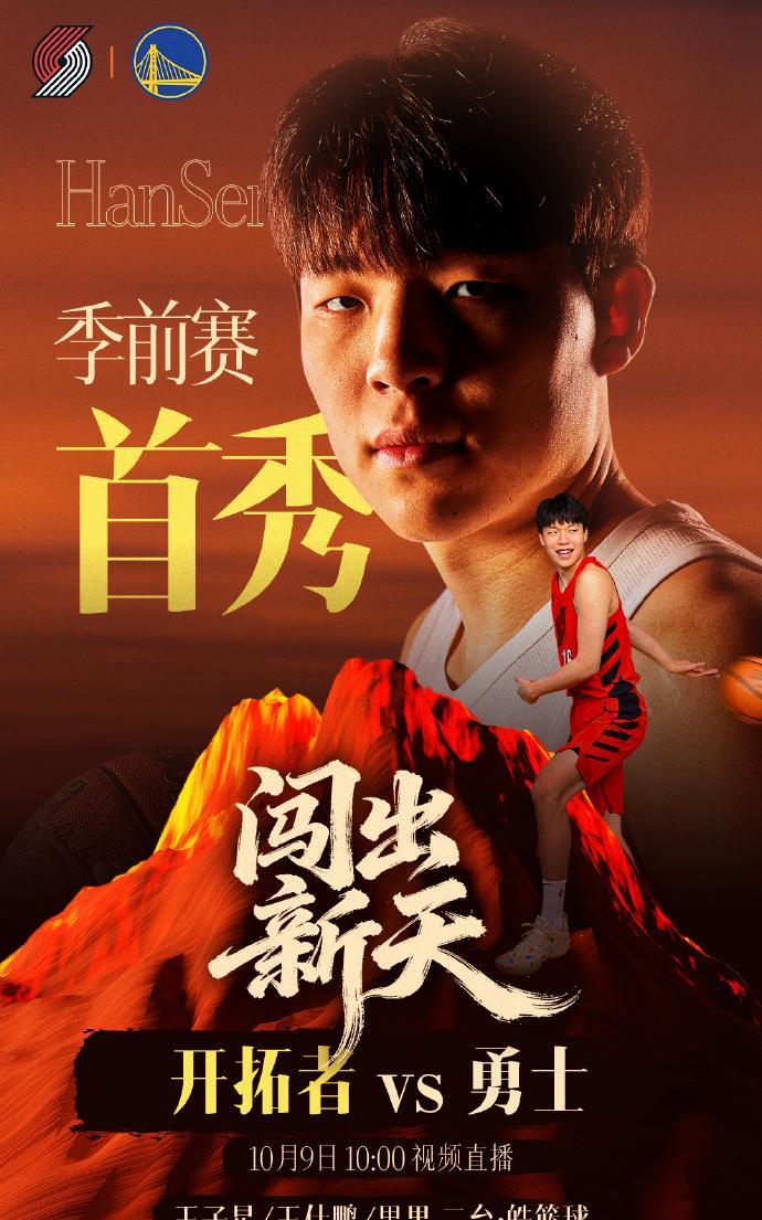 NBA:杨翰森季前赛首秀! 北京时间10月9日,明早10:00 开拓者vs勇士,杨瀚森将会上演加入NBA第一年的季前赛首秀!