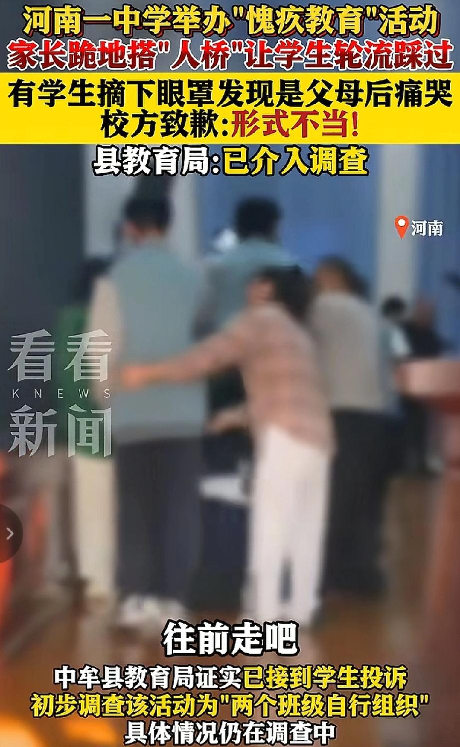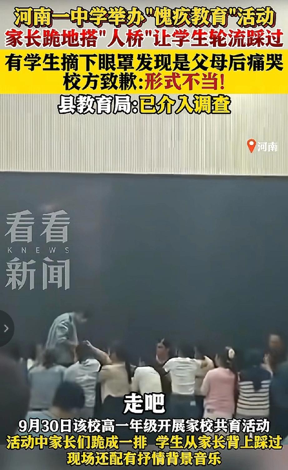 父母向教育下跪,是想让孩子站起来走向高台,而不是让孩子踩着父母成长,对于“跪式”教育,你怎么看? 看到那则新闻时,我心里像被什么东西狠狠揪了一下。 一群家长跪在冰冷的地上,任由孩子蒙着眼从背上踩过。当眼罩摘下,孩子痛哭流涕。校方轻描淡写地致歉,说“形式不当”。 作为一名普通家长,我太懂那种焦虑了。我们害怕孩子被宠坏,担心他们不懂得生活的艰辛,将来在社会上摔跟头。我们愿意为他们付出一切,甚至尊严。 但那一刻,我想问:我们跪下去,是想托举孩子站起来,而不是让孩子踩着我们父母的脊梁去“成长”。 真正的感恩,不是通过践踏父母的尊严来唤醒的。那不是愧疚,是羞辱。 真正的懂事,也不是在惊吓和痛哭中“觉悟”的。那不是成长,是创伤。 如果我的孩子需要通过踩过我的身体才能明白我的辛苦,那我二十多年的教育,本身就是一场彻底的失败。 我们给孩子最好的教育,应该是让他们挺直腰杆,带着尊严和勇气去面对世界的风雨,而不是教他们学会在愧疚和不安中负重前行。 教育的路很长,我们不需要这味“一步到位”的“猛药”。我们需要的,是能让孩子和家长都站着,互相尊重、共同成长的阳光大道。 屏幕前的父母们,你们如何看待这件事情呢?[来看我]一起来聊聊吧![比心] 你问我答教育 聊聊孩子教育