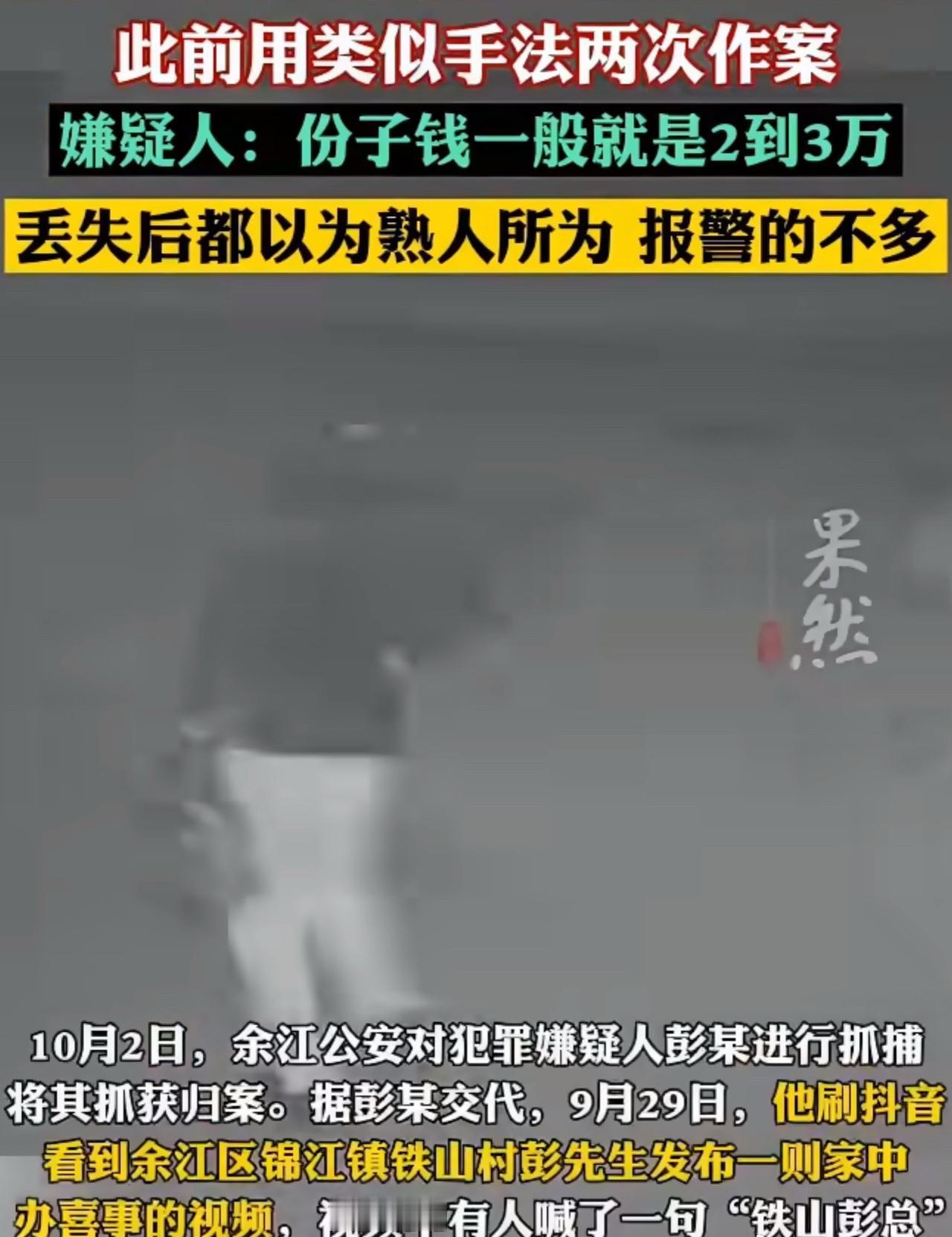 发个婚礼视频报喜,居然把38万份子钱给“送”进了小偷口袋里,这事儿想想都让人后背发凉。 江西的彭先生刚给儿子办完婚礼,满心欢喜地在网上发了段婚宴视频,没成想就被赌徒彭某给盯上了。视频里一句“铁山彭总”的称呼,成了小偷找地址的关键线索,他直接用地图搜出大致位置,半夜乔装打扮去踩点,趁着凌晨把装钱的箱子整个抱走了,那里面可是亲戚朋友的份子钱、儿媳的陪嫁和见面礼,彭先生当场就急哭了,一开始还以为是熟人干的。更可气的是,这小偷还是惯犯,之前就靠刷视频找办喜事的人家下手,知道很多人丢了钱觉得“家丑不外扬”不愿报警,胆子越来越大。 这事看着是个例,其实藏着咱们每个人都可能踩的坑。现在谁不爱发个朋友圈、抖个短视频?晒娃的、晒饭的、晒喜事的,总觉得“记录生活”是件开心事,可没成想这些日常分享,在别有用心的人眼里就是“作案指南”。山西有个大哥更冤,发短视频时没关定位,连办公室保险柜的位置和窗户没关的细节都露了,直接招来跨省小偷,二十多万的财物被洗劫一空。 有人说这是“财不外露”的老理儿没记住,可这话真有点站着说话不腰疼。办喜事本就是热热闹闹的事,想跟大家分享喜悦再正常不过;再说乡镇农村银行少,几十万现金一时半会儿存不了,放家里也是没办法的事。真正该警醒的是,咱们的隐私保护意识早该跟上网络时代了。你以为“仅好友可见”就安全,却不知道随便一个定位、一句口误、一个背景里的门牌号,都可能被扒出精准地址。 更让人揪心的是,这种靠刷视频找目标的盗窃案还在变多,2023年全国婚宴被盗的案子比前一年涨了百分之二十七。小偷摸准了大家的心理:办喜事时人杂手忙,现金来不及存;丢了钱怕丢人不愿声张。可这锅不能只让受害者背,平台是不是也该做点什么?要是刷到“婚宴”“份子钱”这类内容,能主动弹出个隐私提醒,说不定能拦住不少坏心思。 现在彭某是被抓了,钱也追回来了,但类似的视频还在网上刷得到。说不定此刻就有小偷在翻着短视频,盯着别人的喜事盘算着坏主意。 咱们总说“分享快乐会加倍”,可没人想让快乐变成麻烦。你平时发视频会特意关定位吗?身边有没有见过类似的隐私泄露事儿?快来评论区聊聊,给大家伙儿提个醒。 来源:齐鲁晚报