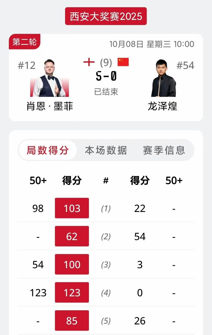 2025斯诺克西安大奖赛64进32轮次,中国球员一喜一忧:斯佳辉绝杀范争一、龙泽煌遭魔术师零封。 斯佳辉5-4范争一 墨菲5-0龙泽煌