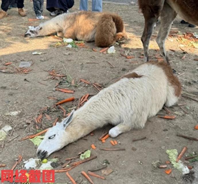 江苏南通有女子在假期去动物园。 女子本想来野生动物园看一看动物,闲暇一下心情,只不过她看到眼前的一幕令她也是无语又无奈。 这眼前的一幕竟然有羊驼躺在地上,还翻着白眼,这是身体健康出问题了吗,女子还在猜疑里并得到了答案,由于游客小朋友太过于热情,不停投喂,让这一群羊驼吃得有点撑了。 如今看把这一群羊驼给吃得有点太难为了,这一天下来无数小朋友在动物园内的售卖点买来胡萝卜白菜,这群羊驼不停咀嚼也来不及赶上这不停投喂的速度,还没来得及消化,一轮一轮的投喂它们最终还是受不了躺下了。 其实这里互动可以不要无底线的投喂,虽然现在动物园也有规定,不能随意投喂动物,考虑到动物们的身体健康着想,还是适可而止最好,这一点家长们要提醒一下自己身边的小朋友。 还有就是投喂也要投喂到动物嘴里,不要塞鼻孔里,这就不好了,女子这是让自己的假期看到难言的场面。 这里只能说小朋友们有爱心也有热情。