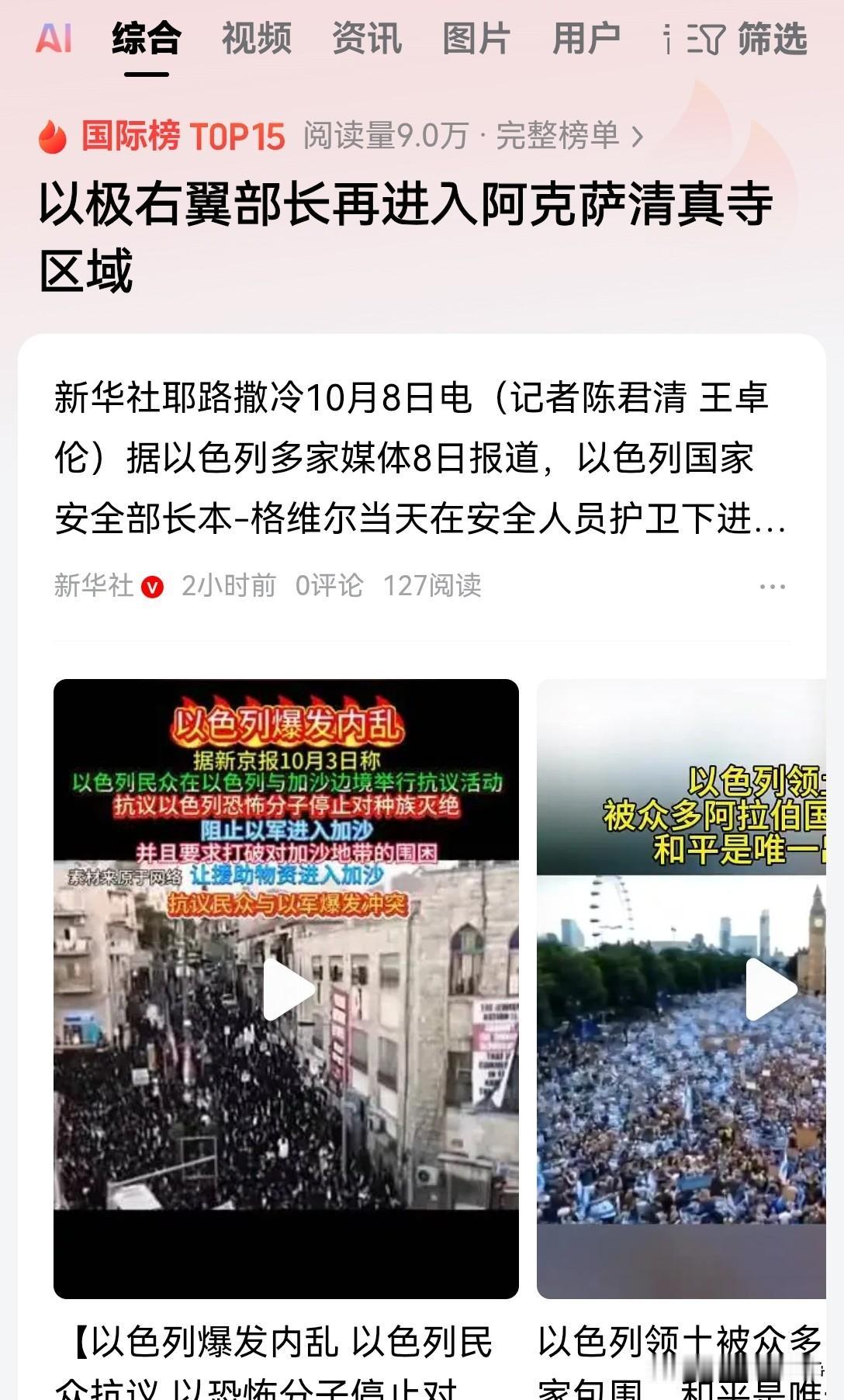 以色列根本就没有任何的信用,特朗普的和平建议,最终会变成一场荒唐的闹剧。 不可能落实的,因为以色列现在的所有举动完全就是背道而驰。 一边嘴里喊着停火,一边继续空袭加沙,这是和平应该有的姿态吗? 最新消息新华社10月8号报道称,以色列国家安全部部长本格维尔,于当天在安全人员的保护下强行进入,阿克萨清真寺区域。 阿克萨清真寺区域本来就是宗教最冲突最敏感的地区! 也是多次巴以冲突爆发的起点。 以色列称呼,这里为圣殿山,伊斯兰教徒称这里为尊贵的圣地。 这是两大宗教共同认可的圣地。 在这里进行各种政治表演都会被视为大不敬! 以色列政府一边说要配合美国进行和平谈判。 而另外一边却持续不断的轰炸加沙,甚至强行闯入有争议的敏感地带。 这不就是故意刺激伊斯兰教信徒的神经吗? 你这到底是推动和平啊,还是激化矛盾呢? 尤其是这个本格维尔,以色列的国家安全部部长! 他是一名极右翼,非常非常仇恨巴勒斯坦人! 这样的政治人物强行闯入阿克萨清真寺,这摆明了就是对伊斯兰教的挑衅! 就这样的态度,你让巴勒斯坦人民怎么和谈呢? 对了,就是这位本格维尔,在环保少女被扣押的时候。 他就跑到监狱去骂那些船队的船员都是恐怖分子。 结果让好几百船员当众驳斥,喊着口号就把他给骂跑了! 现在又强闯伊斯兰教的圣地企图激化局势。 也就是说在这些极右翼的政客心目中停火,那是绝对不可能的。 他们要的就是侵略和强行吞并,而且留地不留人! 这才是他们的战略企图!