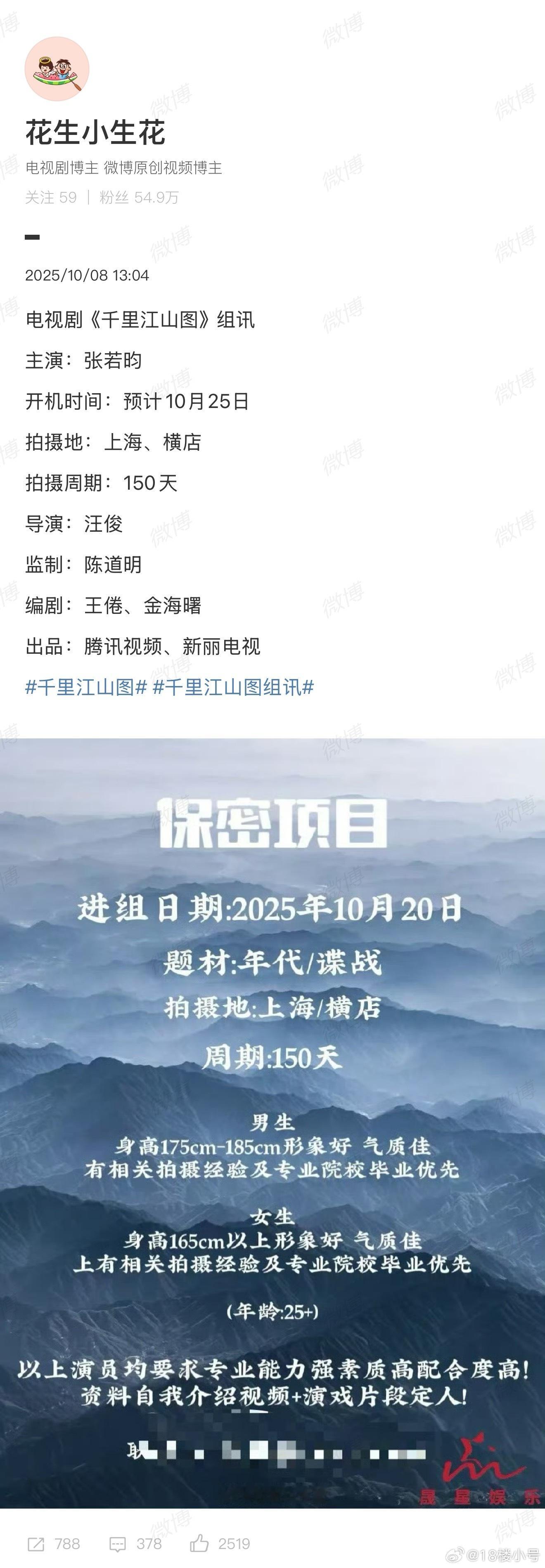 千里江山图10.25就要开机了,我现在都不知道我们浩翔到底演不演