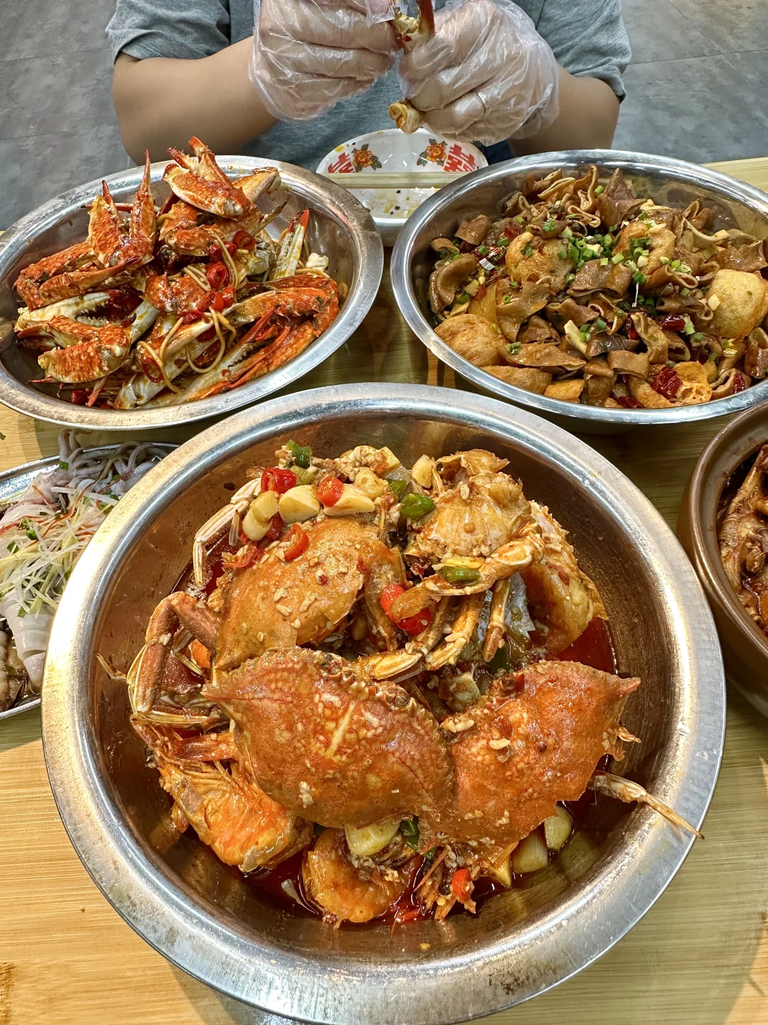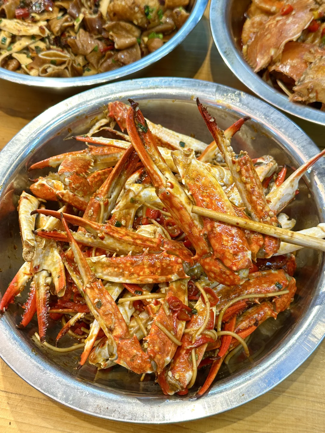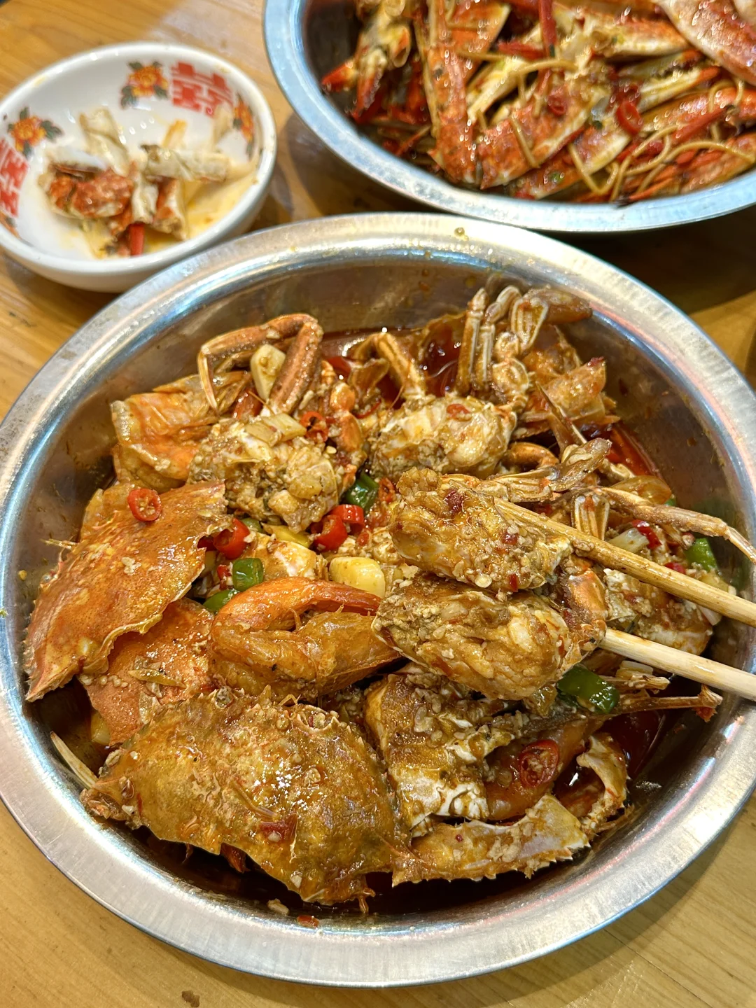 名不虚传的好吃!还好有本地人带我去吃这家,嗲嗲娭毑都会去吃的大排档……没什么环境生意依旧好🔥食材吃得出的新鲜,连烤牛肋条都吃得出的品质好!蟹个头又大又饱满,还有好多娄底老口味,烤牛油、兰花干、蟹铅拌面🥹一吃一个不吱声(肖 有为)