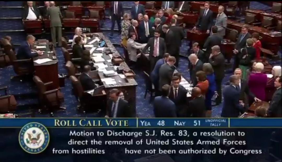 🚨🇺🇸参议院否决阻止特朗普袭击毒品恐怖船只的议案 美国参议院以48票对51
