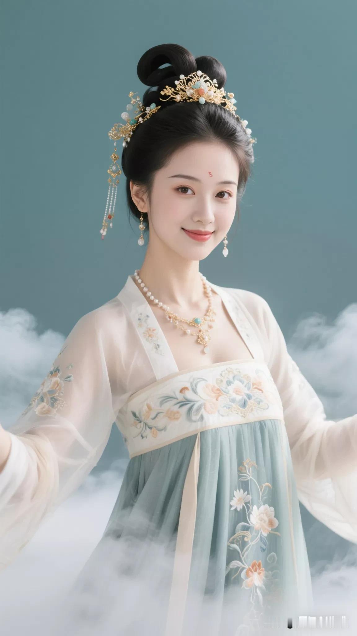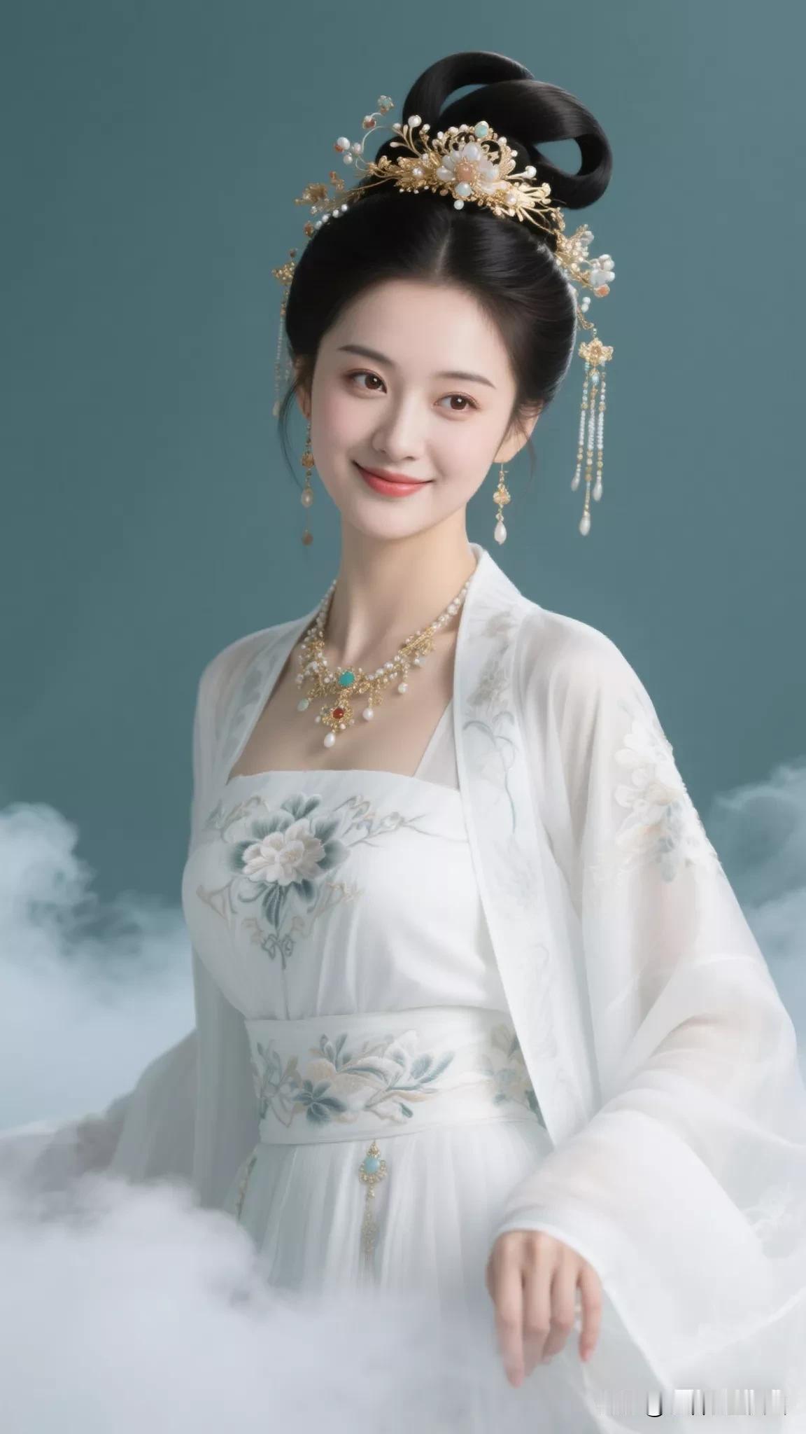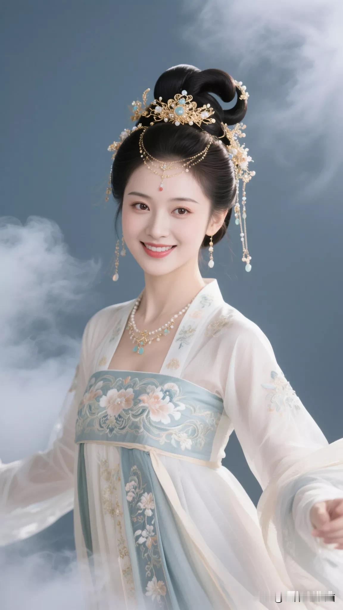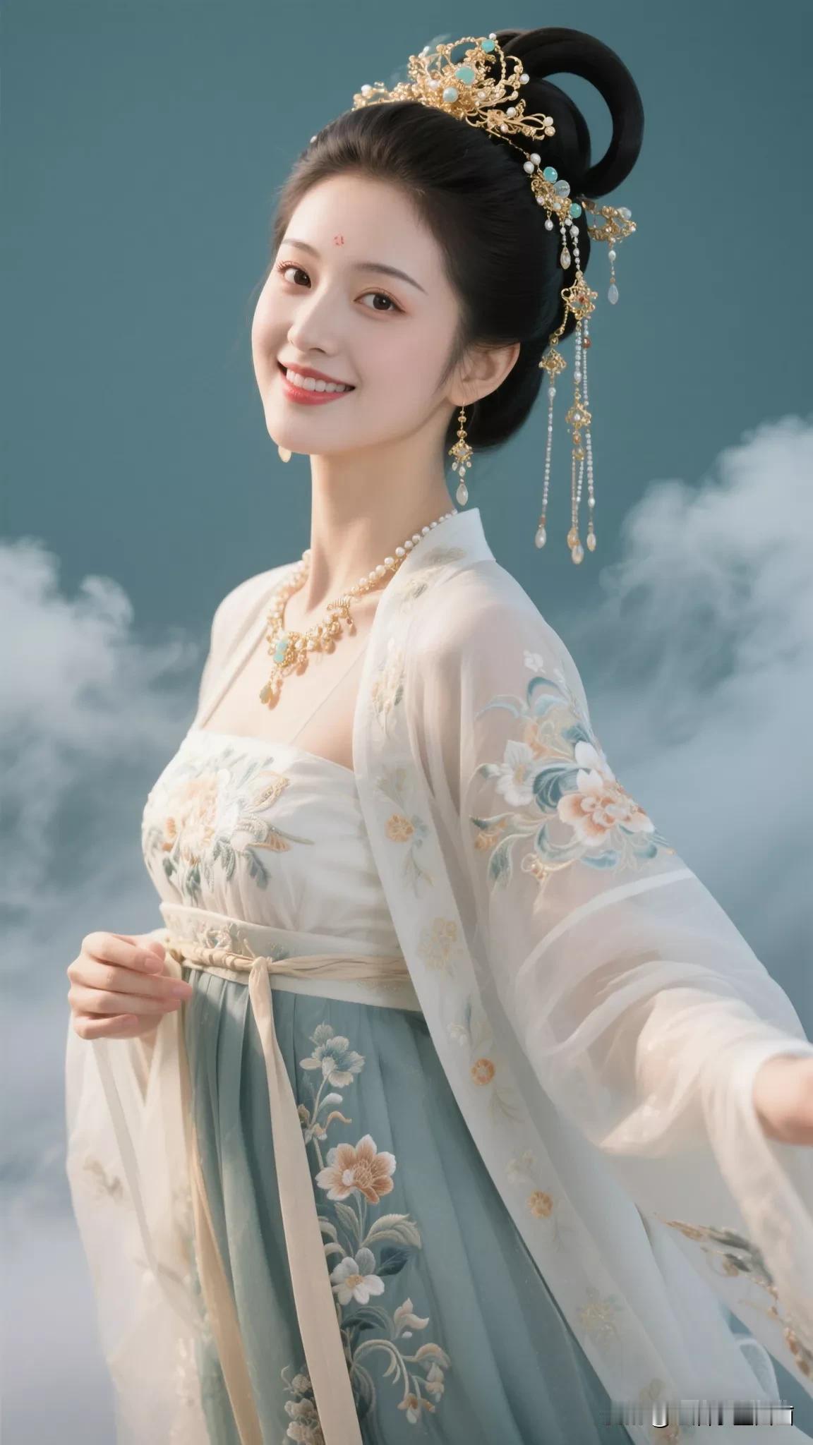 古风仙子,云中漫步,笑靥如花张立启原创书画AI作品古仕女发髻服饰集锦首发ai唐韵仕女照 ai唐韵仕女图 唐风美人造型 华裳抚琴像 ai唐妆团扇像 AI唐髻雅韵 华裳古风像 唐风牡丹妆容 张立启原创书画AI作品首发
