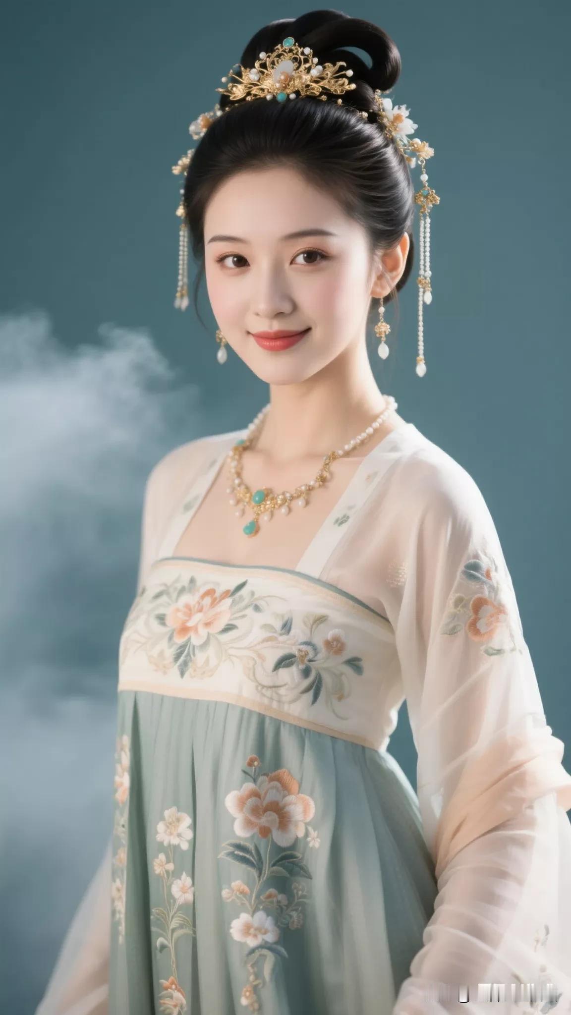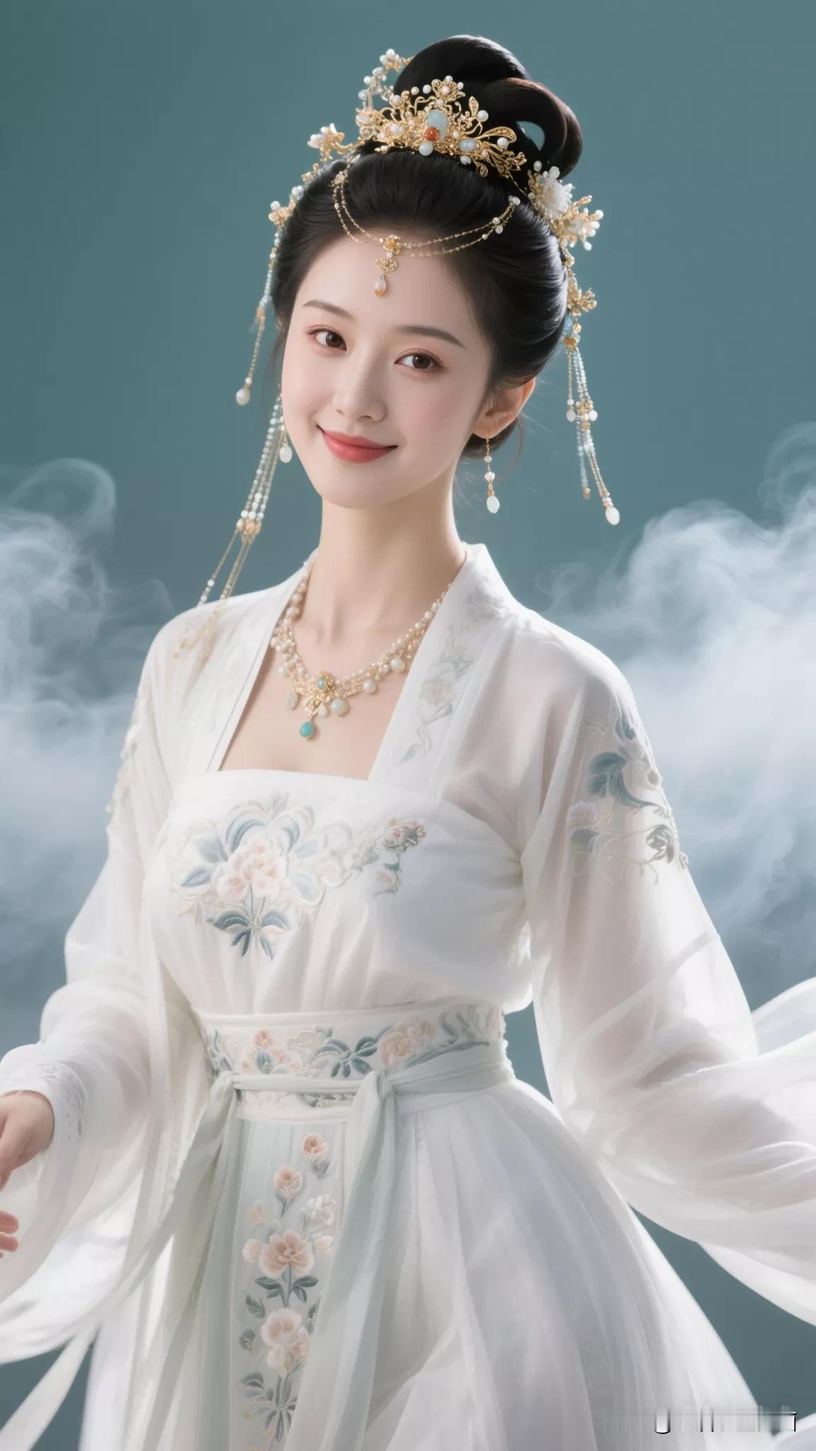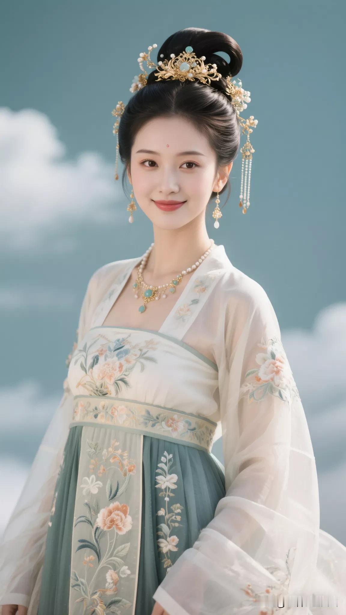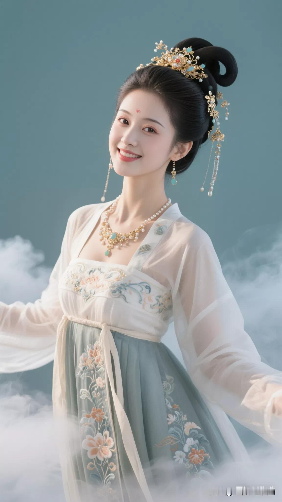 古风仙子,云中漫步,笑靥如花张立启原创书画AI作品古仕女发髻服饰集锦首发ai唐韵仕女照 ai唐韵仕女图 唐风美人造型 华裳抚琴像 ai唐妆团扇像 AI唐髻雅韵 华裳古风像 唐风牡丹妆容 张立启原创书画AI作品首发