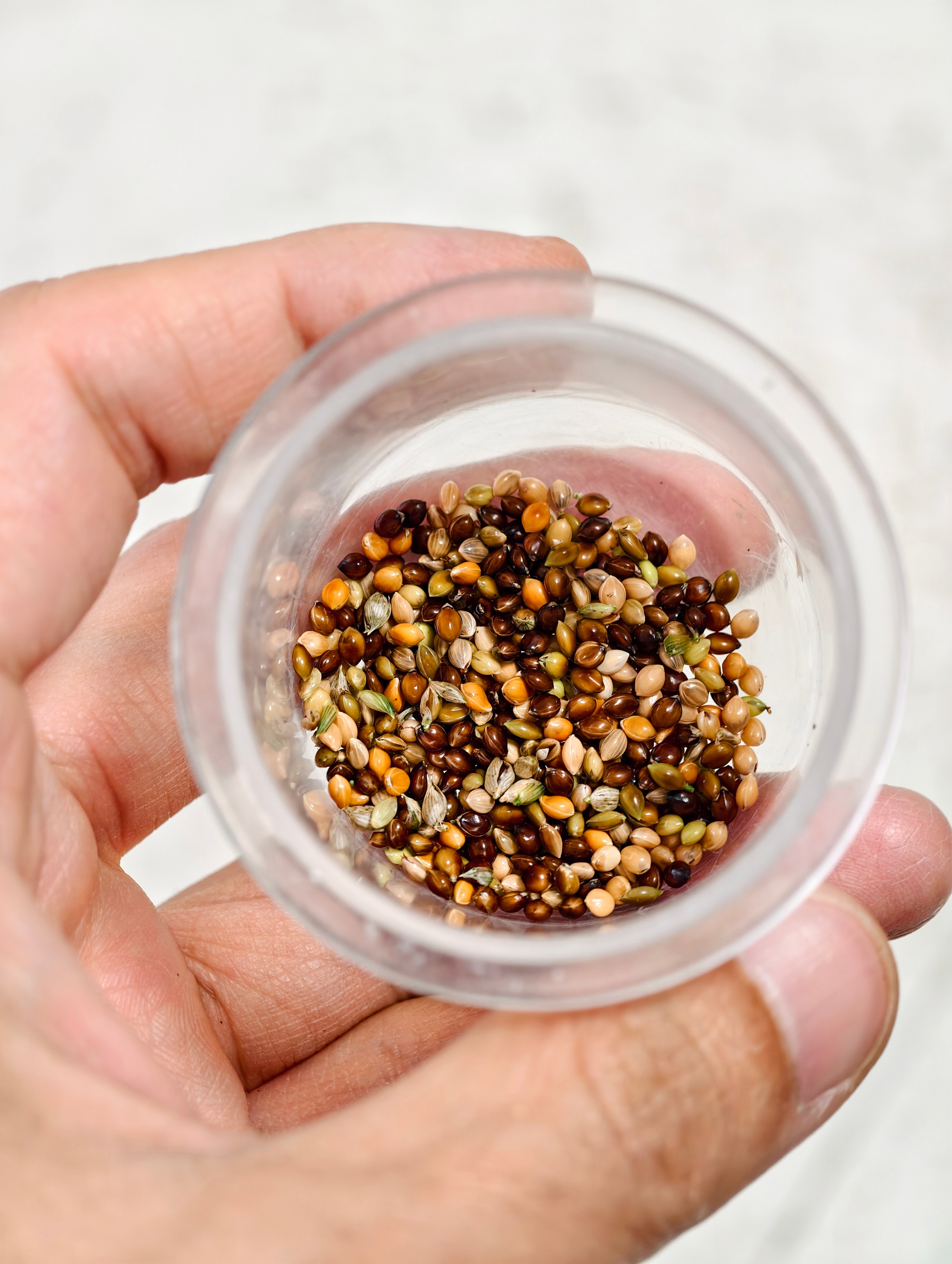花盆里长出来了几颗黍子,简单收集再搓一下,就得到了一撮鸟粮[吃瓜]