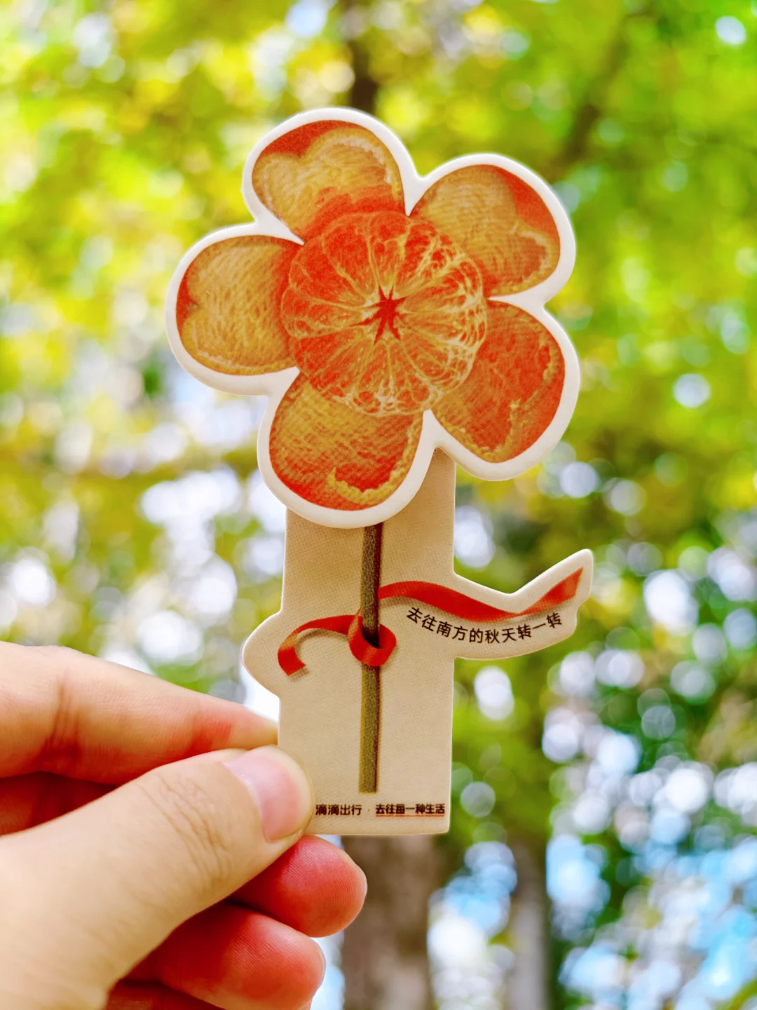 更绝的是下车时,司机师傅居然递来个信封,打开是同款的mini香卡!巨可爱,还可以转动。揣在兜里逛秋景,连风吹过都带着南方的果香,这哪是打车,明明是把秋日小确幸直接送到了身边~