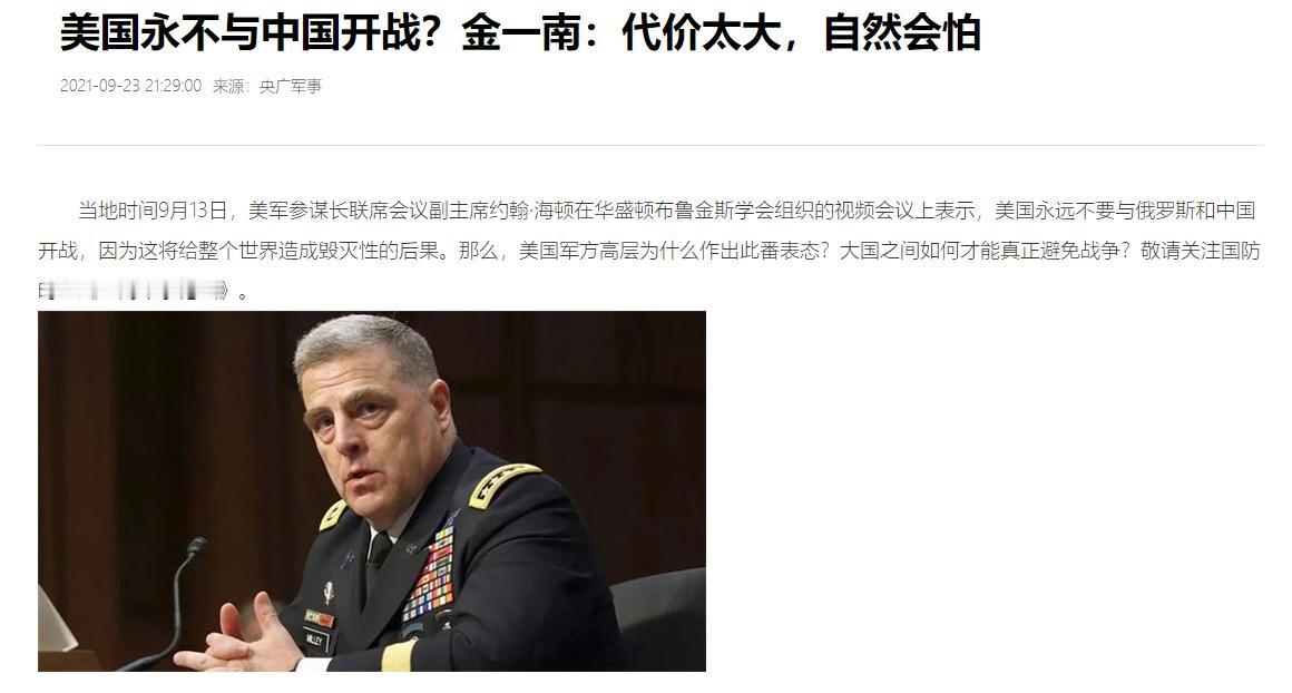 美军参谋长当着很多人的面说:“我们的目标应该是永远不与中国开战。” 这句话不是最近才提出的,早在2021年美国参谋长联席会议副主席约翰·海滕就发表了这一观点,当时中国展现的综合实力已让美国高层心生忌惮。 而历经了这四年,如今美国军政界对这一观点的共识愈发强烈,背后正是中国国防、经济、科技实力全方位跃升形成的实实在在威慑力。 从国防实力来看,中国国防白皮书明确指出,2023年我国国防费占GDP比重约1.7%,远低于世界主要国家平均水平,但每一分投入都精准转化为战斗力。 福建舰列装后,中国成为全球少数掌握电磁弹射技术的国家,这种技术能让歼-35隐身战机满油满弹起飞,单位时间出动架次比传统方式提升50%,连空警-600预警机这种之前上不了舰的装备也能随舰出征,大幅增强航母编队的侦察和指挥能力。 东风系列导弹家族持续升级,像东风-100巡航导弹能以4马赫超音速飞行,射程达3000-4000公里,命中精度控制在10米内,既能打击陆地固定目标,也能对付海上移动舰艇。 这种防御性国防力量的提升,让任何潜在对手都不得不认真掂量开战的军事代价。 而除了硬实力的直接威慑,经济与科技领域的深度绑定同样让美国投鼠忌器。 中国GDP总量连续多年稳居世界第二,制造业规模占全球近30%,小到电子产品、大到工程机械,全球市场都离不开“中国制造”。 在科技领域,5G标准必要专利占比超42%,全球每10部5G手机就有4部采用中国技术标准,人工智能、量子通信等前沿领域也实现从跟跑到领跑的跨越,量子通信卫星“墨子号”已实现千公里级星地双向量子纠缠分发。 中美贸易额即便在摩擦背景下仍保持高位,2023年达6900多亿美元,两国在电子产品、农产品等诸多领域形成“一损俱损”的利益共同体。 若贸然开战,不仅全球供应链会遭受毁灭性打击,美国民众日常使用的手机、电脑价格可能翻倍,本土企业也将失去庞大的中国市场,这种经济层面的巨大风险让决策者望而却步。 正如国防大学金一南将军当时回应所言,“美国不是不会,而是不敢!中国早已强大,与我们开战的代价太大!” 我们拥有全球最完整的工业体系,能自主生产从芯片到航母的各类产品;14亿人口构成的庞大市场,为经济发展提供源源不断的动力;更有“犯我中华者虽远必诛”的坚定意志。 美国深知,与这样一个核大国、经济大国、科技大国开战,代价将远超任何一场局部冲突,甚至可能动摇其全球霸权根基。 如今“不与中国开战”的表态,本质上是对中国实力的认可,更是对全球和平稳定的被迫理性选择。中国将继续走和平发展道路,但也绝不允许任何国家触碰我们的核心利益底线,这既是对本国人民负责,也是对世界和平的贡献。