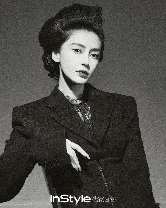Angelababy高颅顶刘海Angelababy黑白特写,简简单单就可以很美