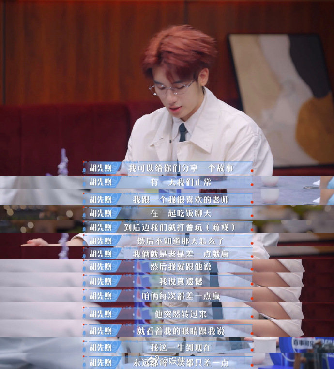 胡先煦一句话说哭侯梓泰 谁没被小胡聊“差一点成功”戳到?从扑克遗憾到人生擦肩,句句扎心,侯梓泰红着眼眶的共情,像极了每个努力过的我们!令人心动的offer 建议备纸巾