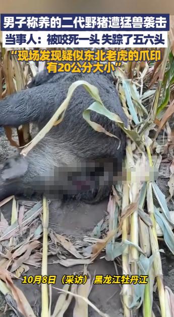 “太吓人了!”10月8日,黑龙江牡丹江,一男子家养的二代野猪被猛兽袭击,1头被咬