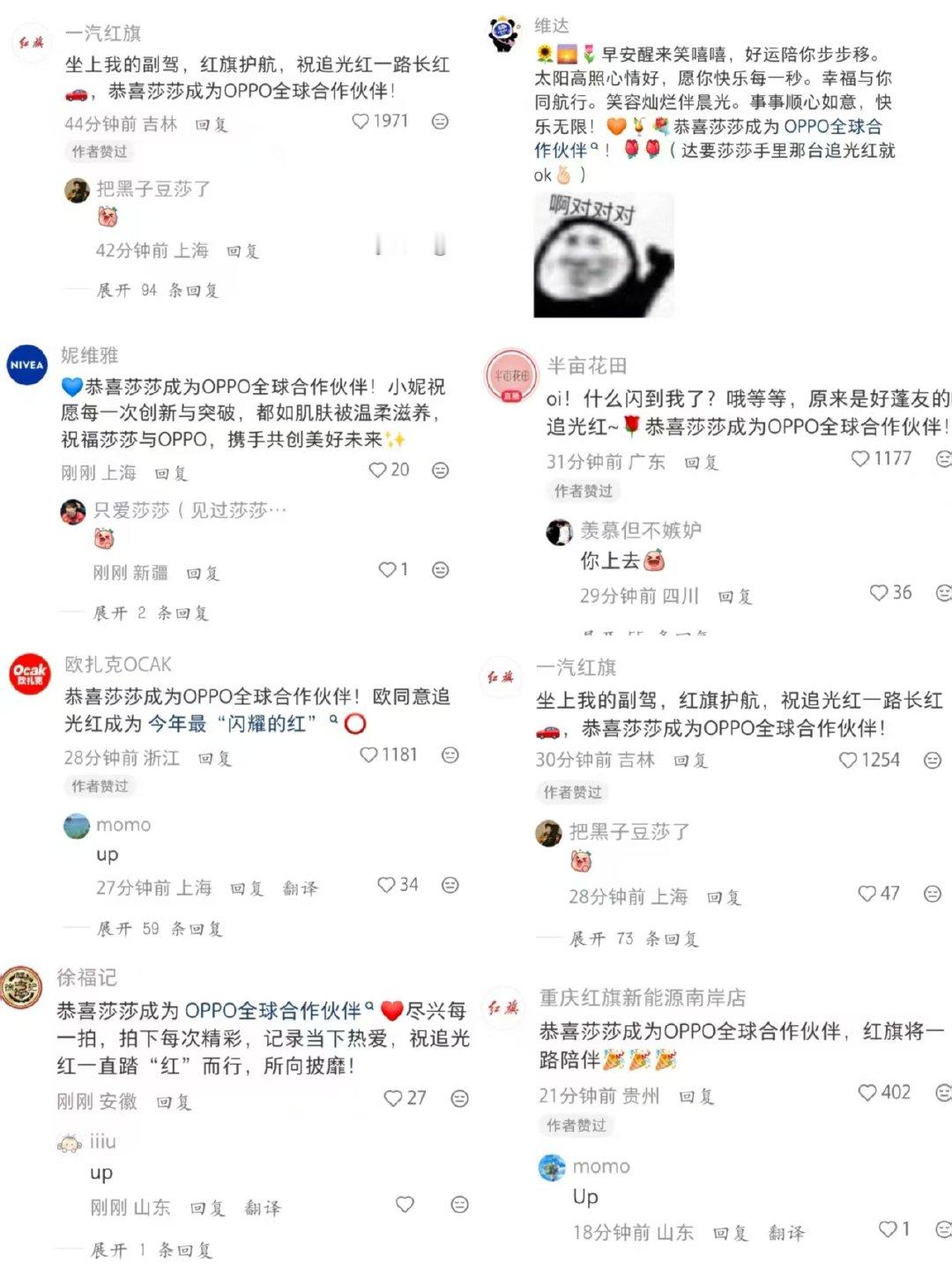 孙颖莎OPPO全球合作伙伴 孙颖莎同款findx9 孙颖莎同款OPPO平板 莎局这排面我直接看傻了!OPPO评论区全是红色联盟在团建,其他代言品牌还来串门庆祝,这联动真的独一份